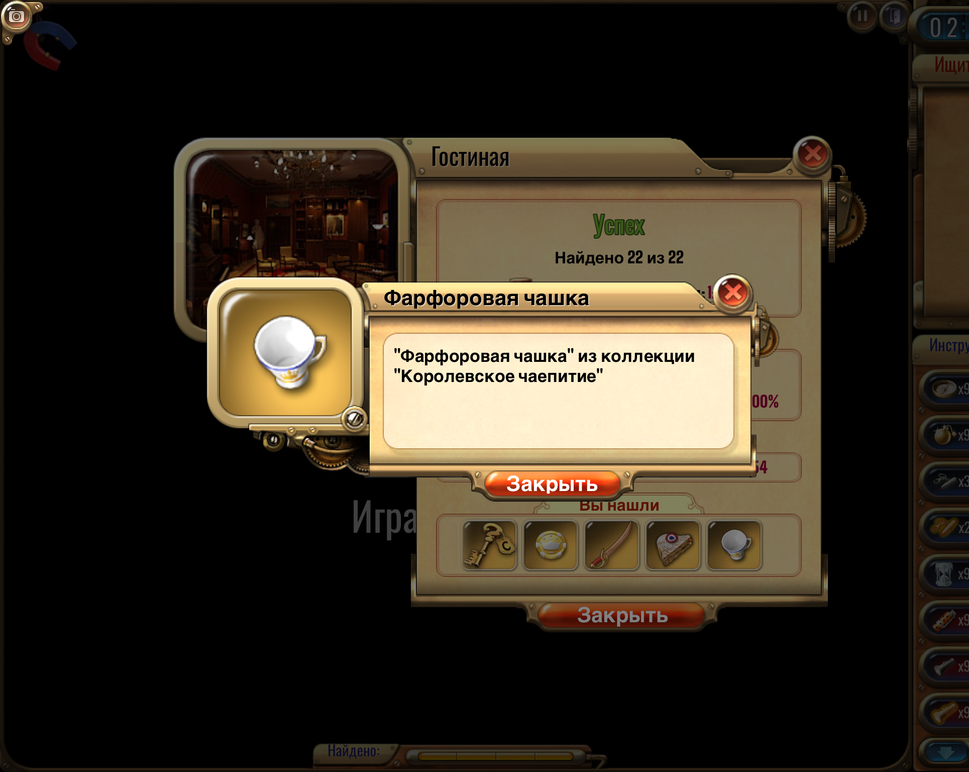 🔹 После прохождения комнаты сделай скриншот любого робота из коллекции «Механические помощники» (в выпадающем списке найденных предметов). <br>