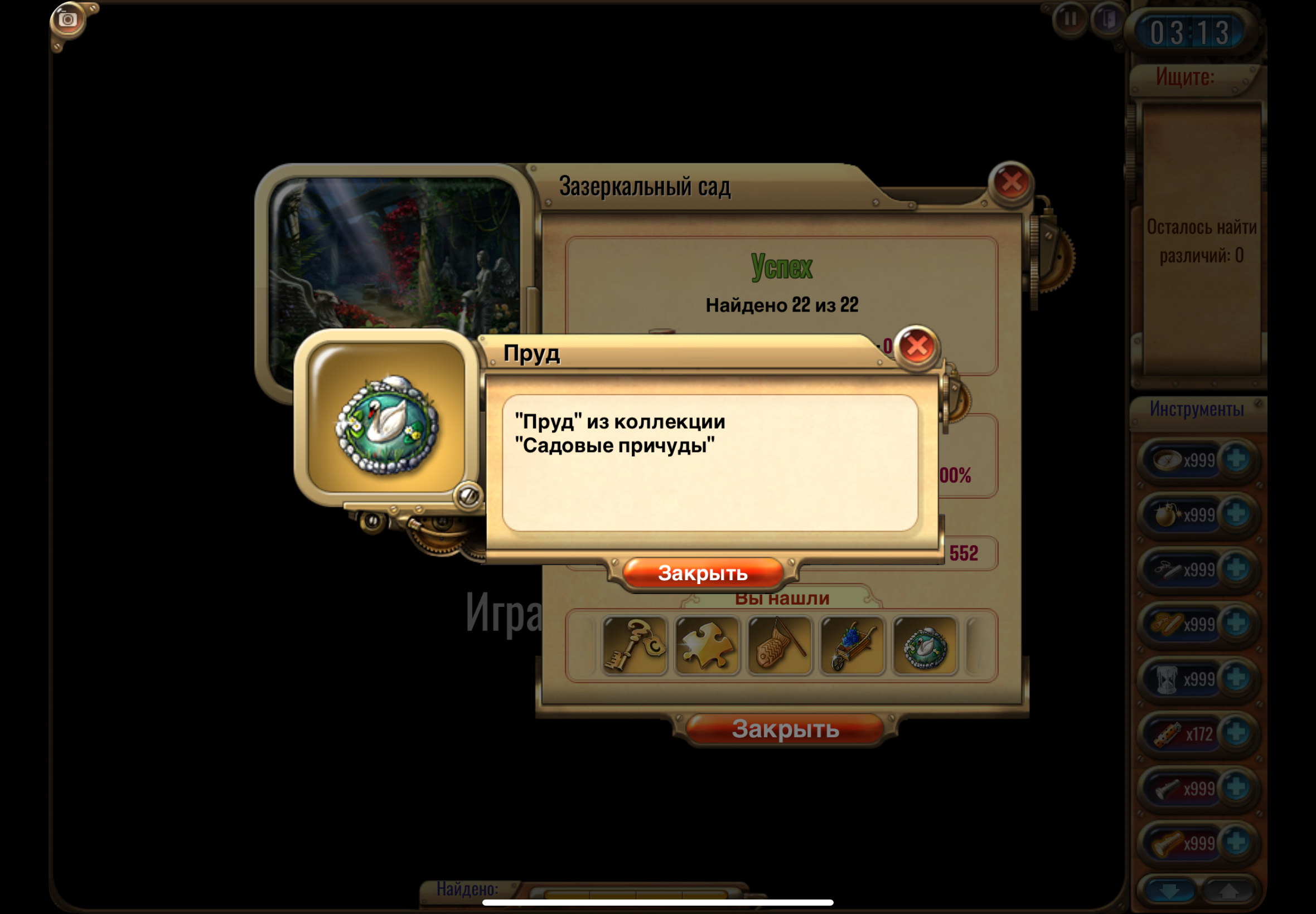 🔹Отыщите один из предметов коллекции Заслуженные награды, сделайте скриншот, где найденный предмет отображается в списке после прохождения комнаты. <br> <br>
