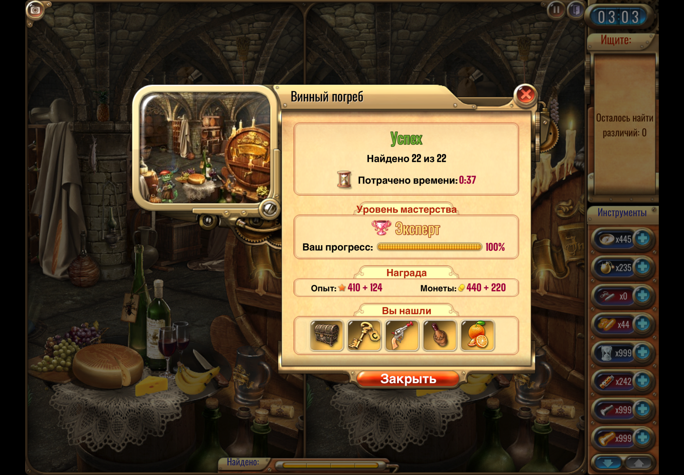 🔹Найдите один из предметов коллекции Секретные приспособления, сделайте скриншот, где найденный предмет отображается в списке после прохождения комнаты. <br> <br>