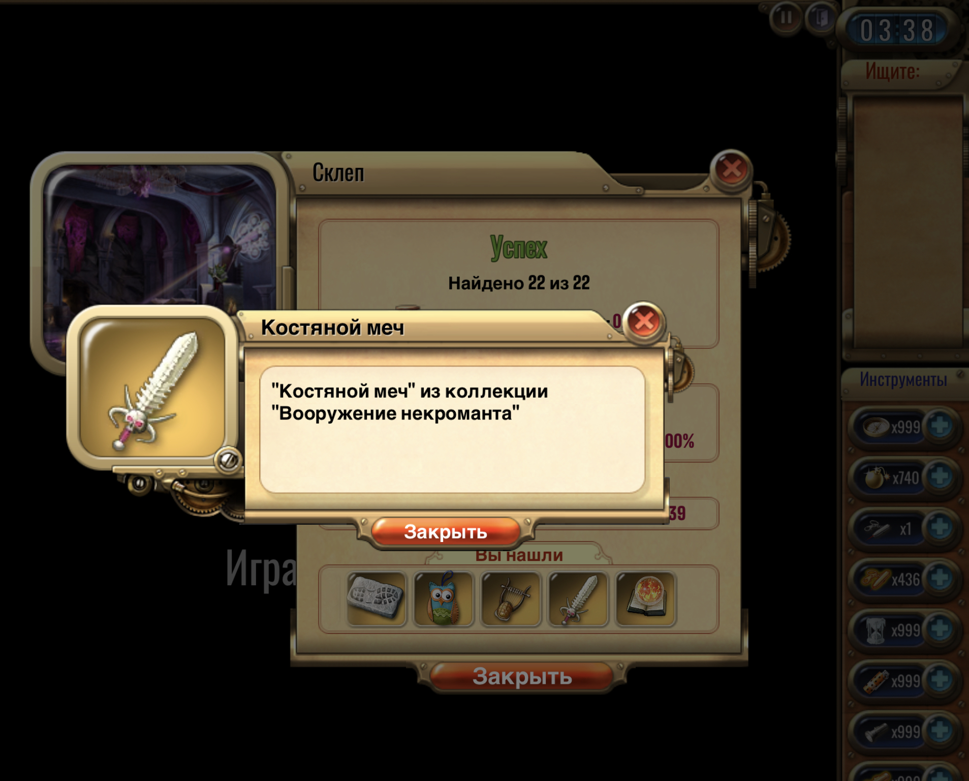 🔹Исследуй Болотную крипту, найди любого Водного духа, сделай скриншот, где найденный предмет отображается в списке после прохождения комнаты. <br>