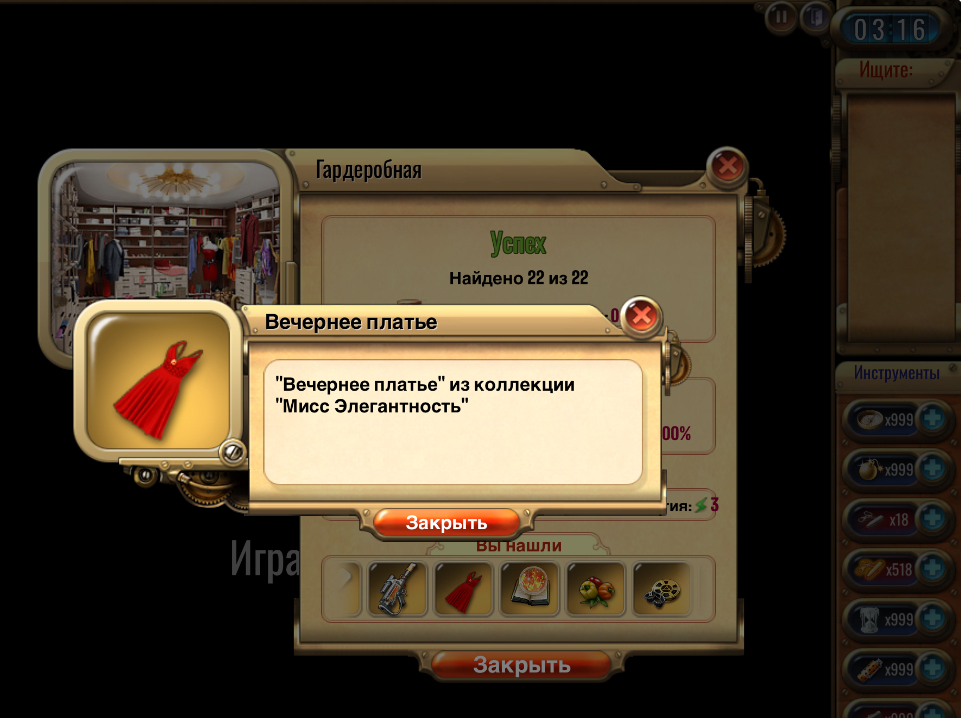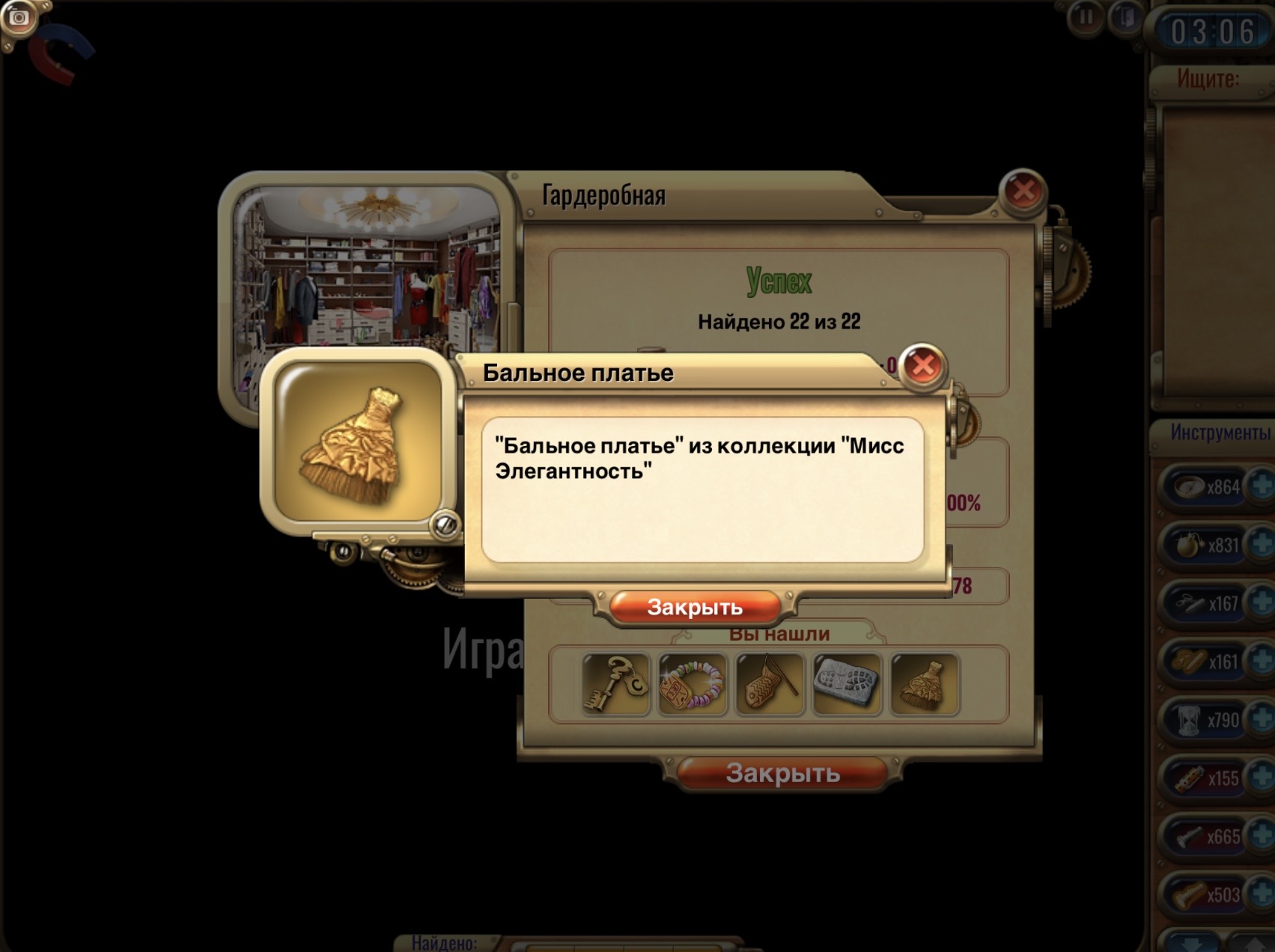 🔹Отыщите один предметов коллекции Императорские десерты (Охотничья, Гостиная, Спальня), сделайте скриншот, где найденный предмет отображается в списке после прохождения комнаты. <br> <br>