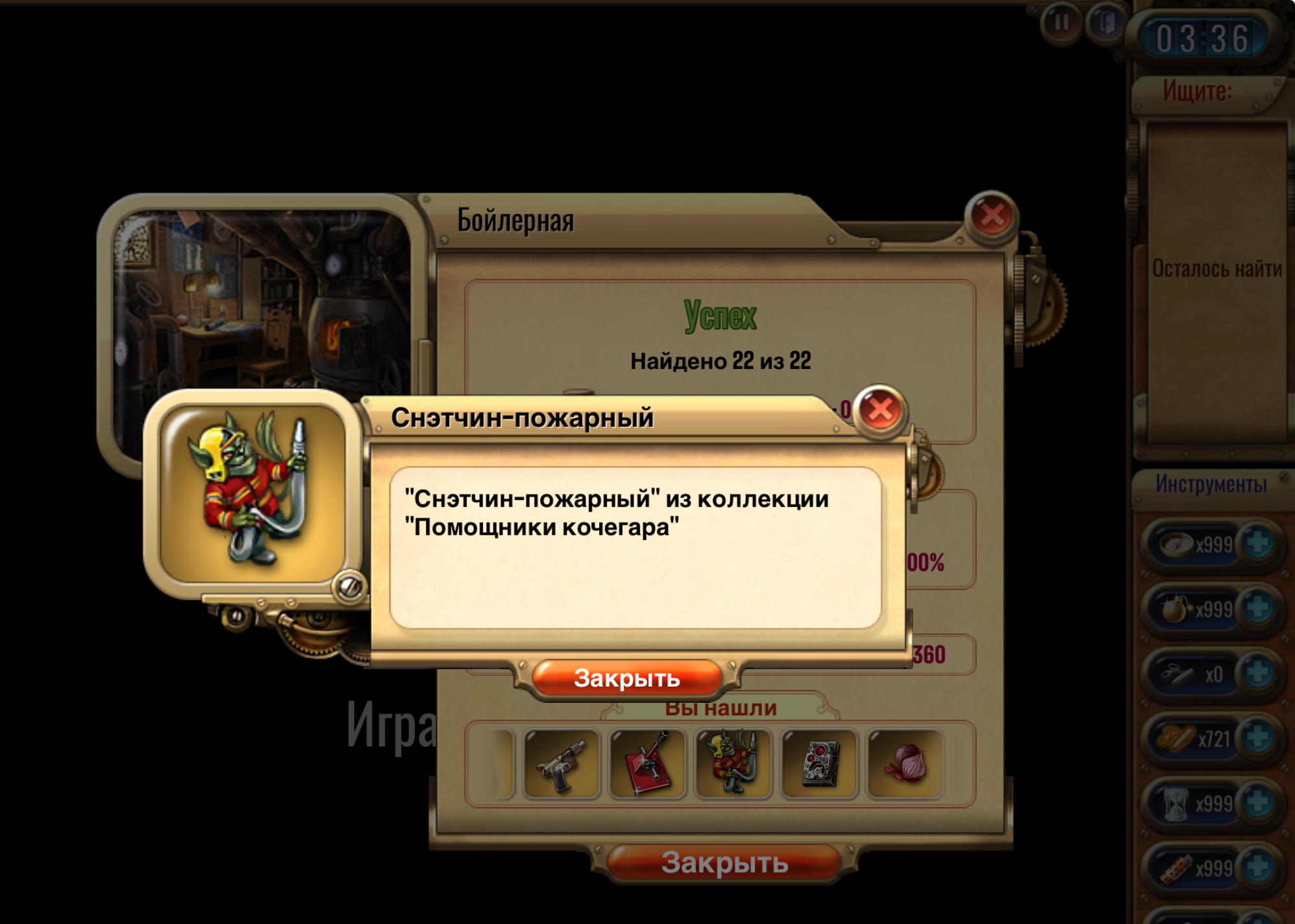 🔹Найдите один из предметов коллекции Секретные приспособления, сделайте скриншот, где найденный предмет отображается в списке после прохождения комнаты. <br> <br>