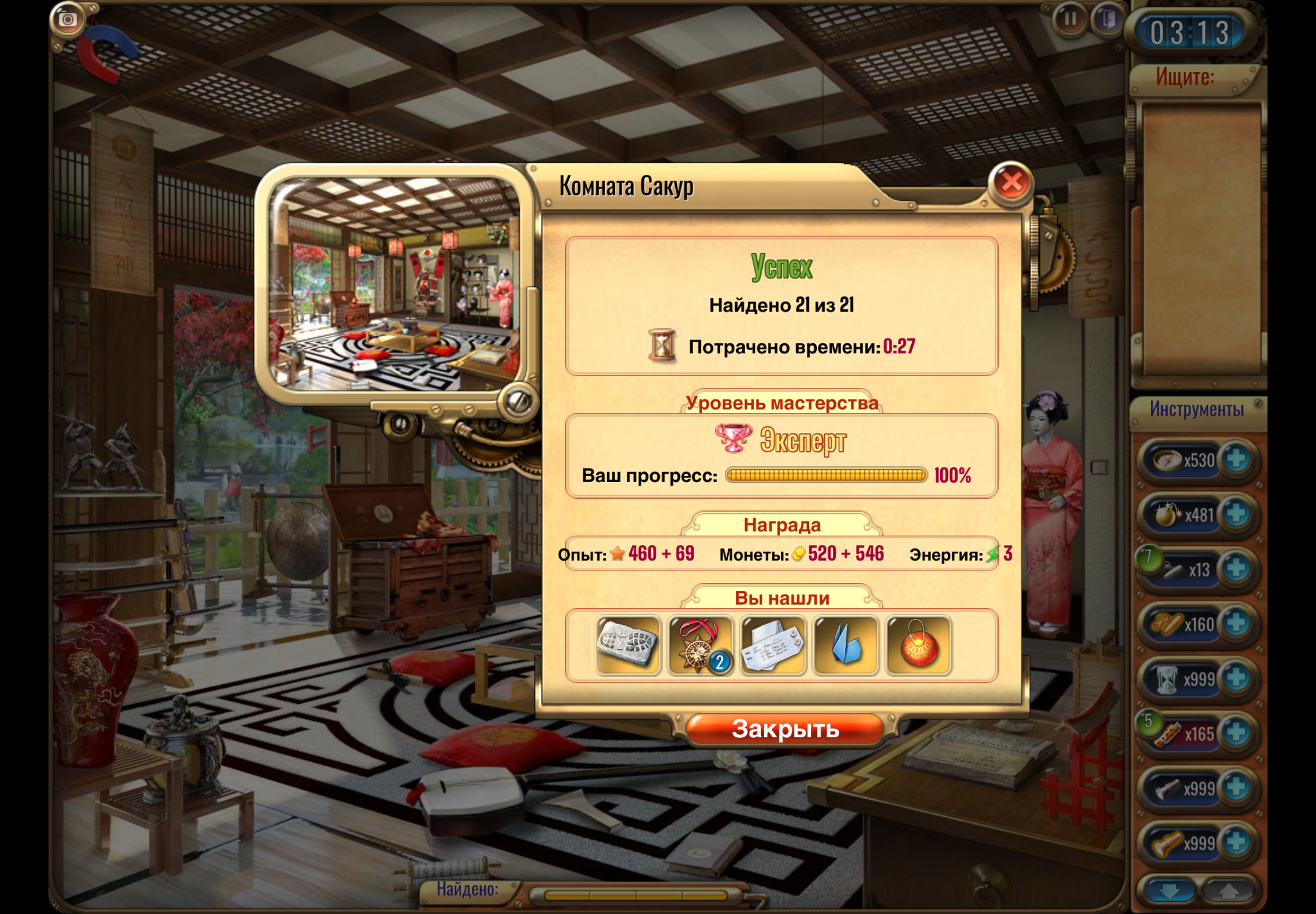 🔹 Найти Маску вождя племени и сделать скрин из выпадающего списка после прохождения комнаты. <br>