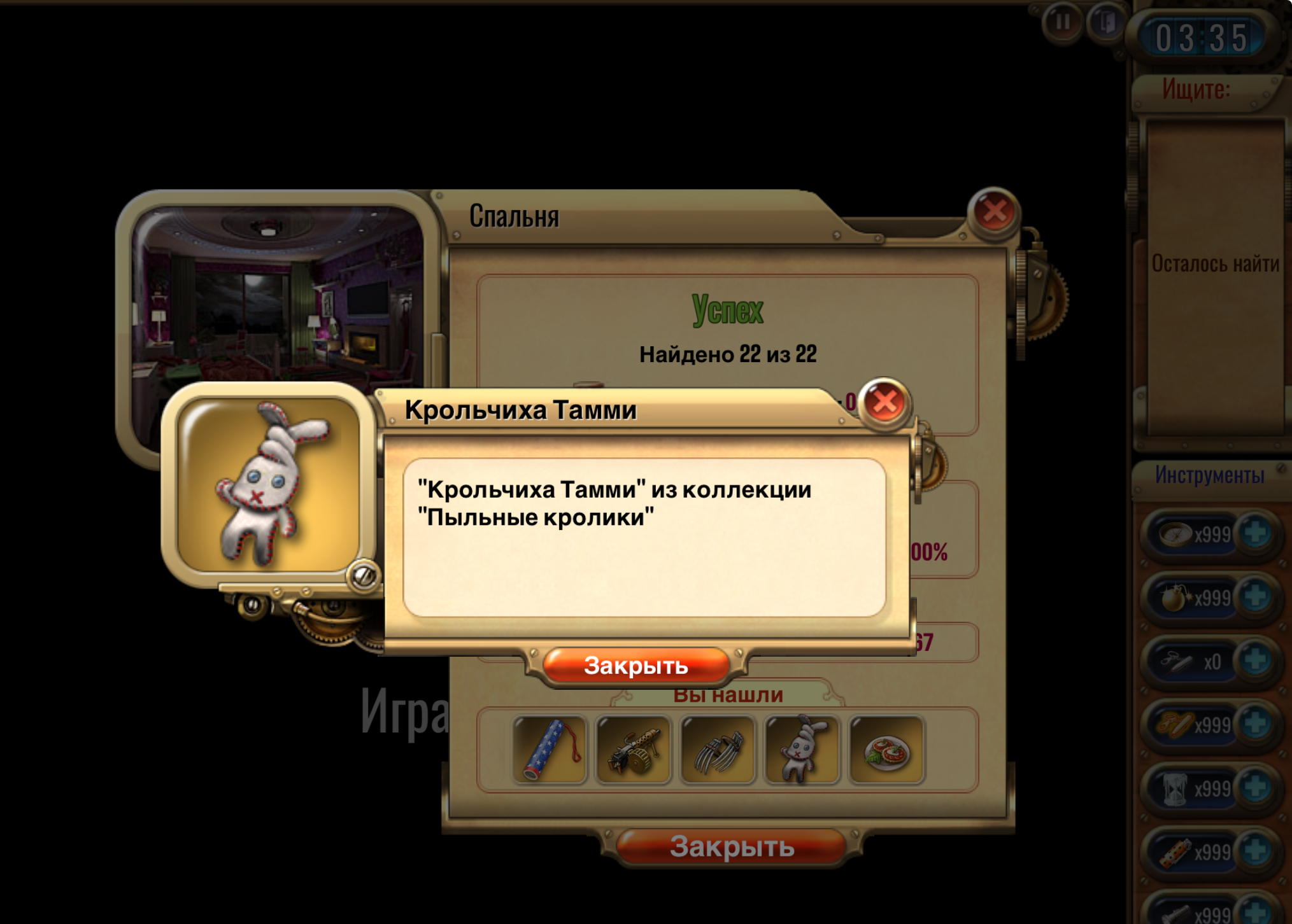 🔹 Найти предмет из коллекции «Морские гады» и сделать скрин из выпадающего списка после прохождения комнаты. <br>
