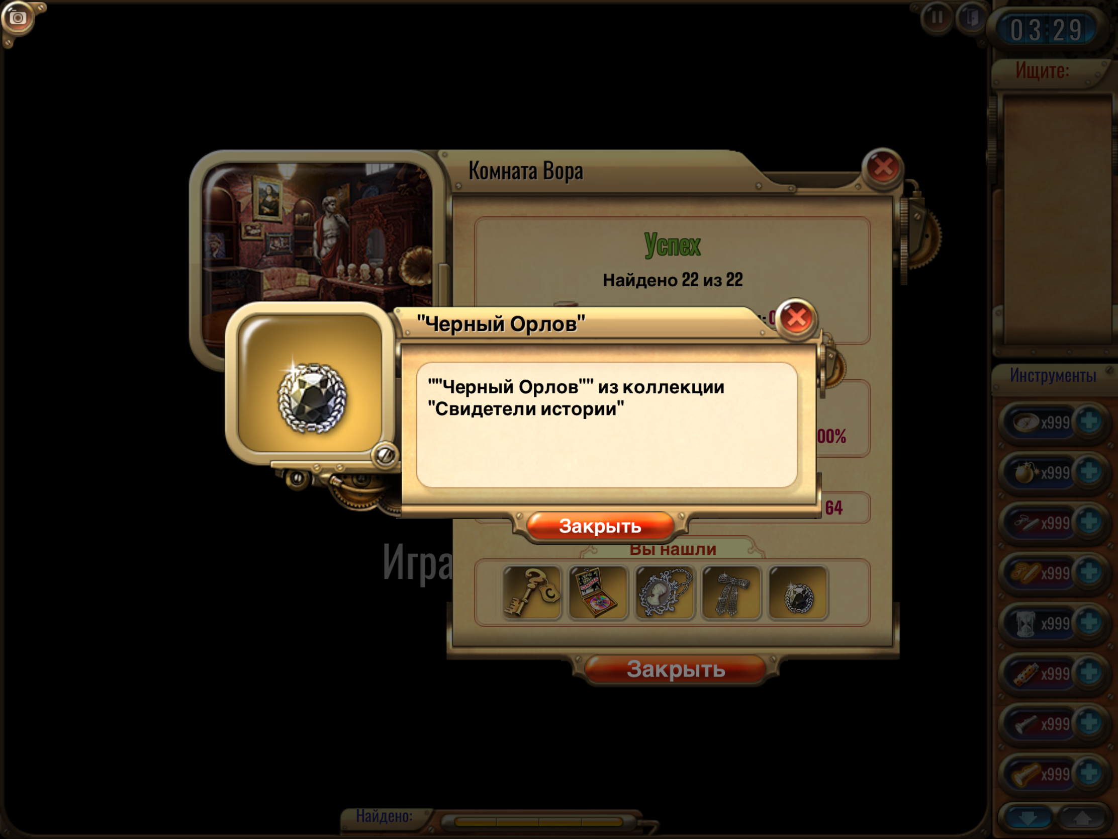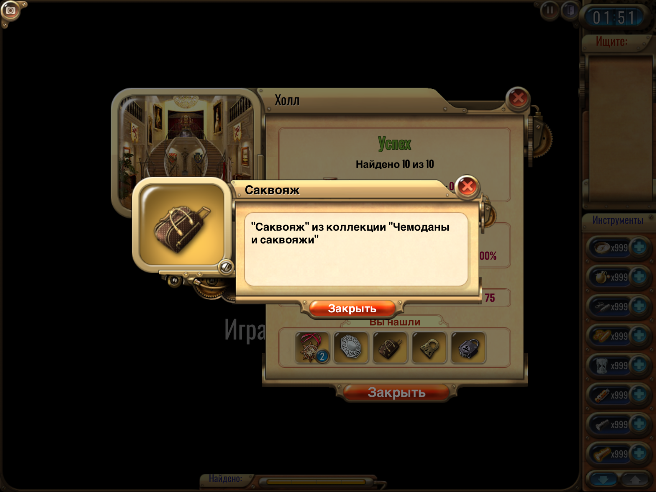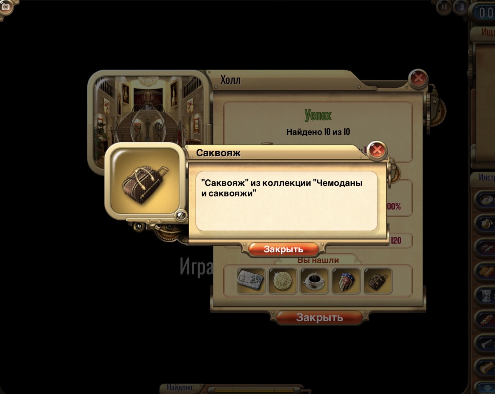 🔹 Найти предмет из коллекции «Морские гады» и сделать скрин из выпадающего списка после прохождения комнаты. <br>