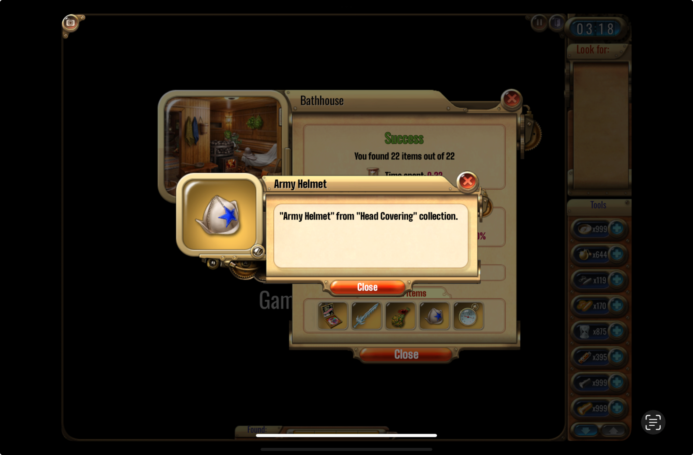 ✔ из списка, выпадающего после прохождения, сделать скрин подходящего под задание предмета <br>
