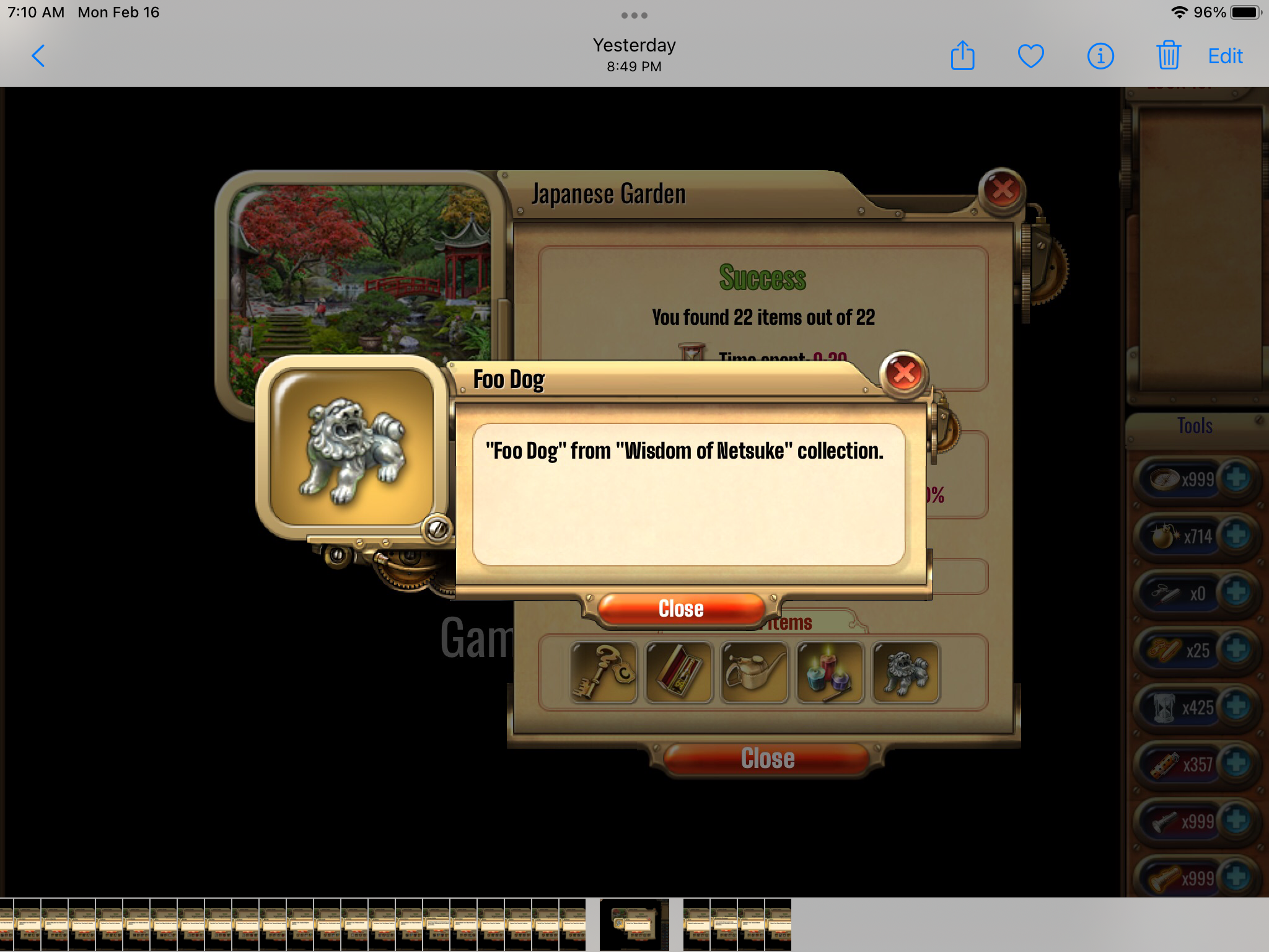✔ из списка, выпадающего после прохождения, сделать скрин подходящего под задание предмета <br>