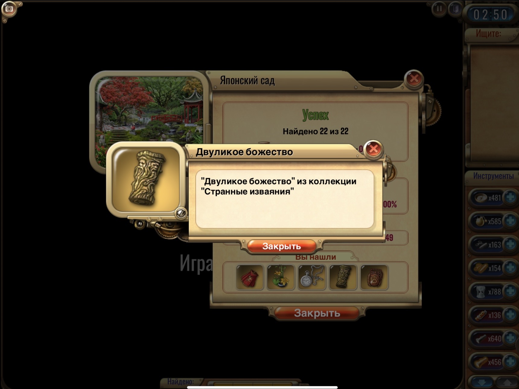 ✔ исследовать Японский сад <br>