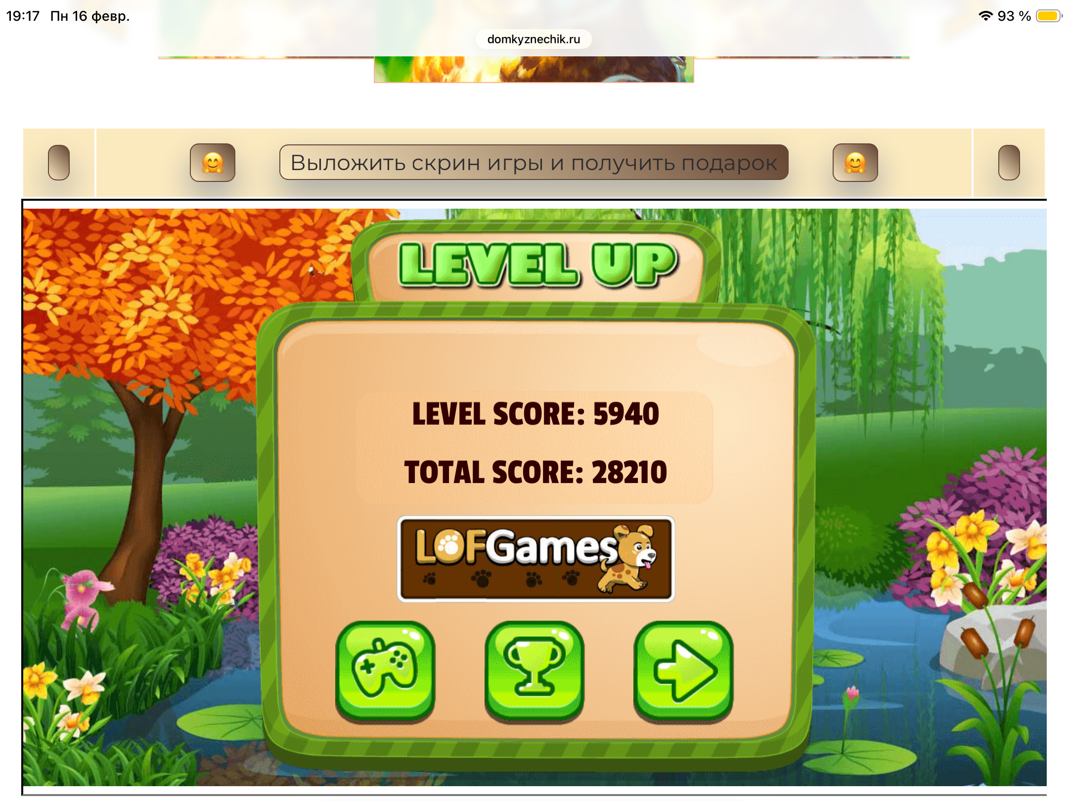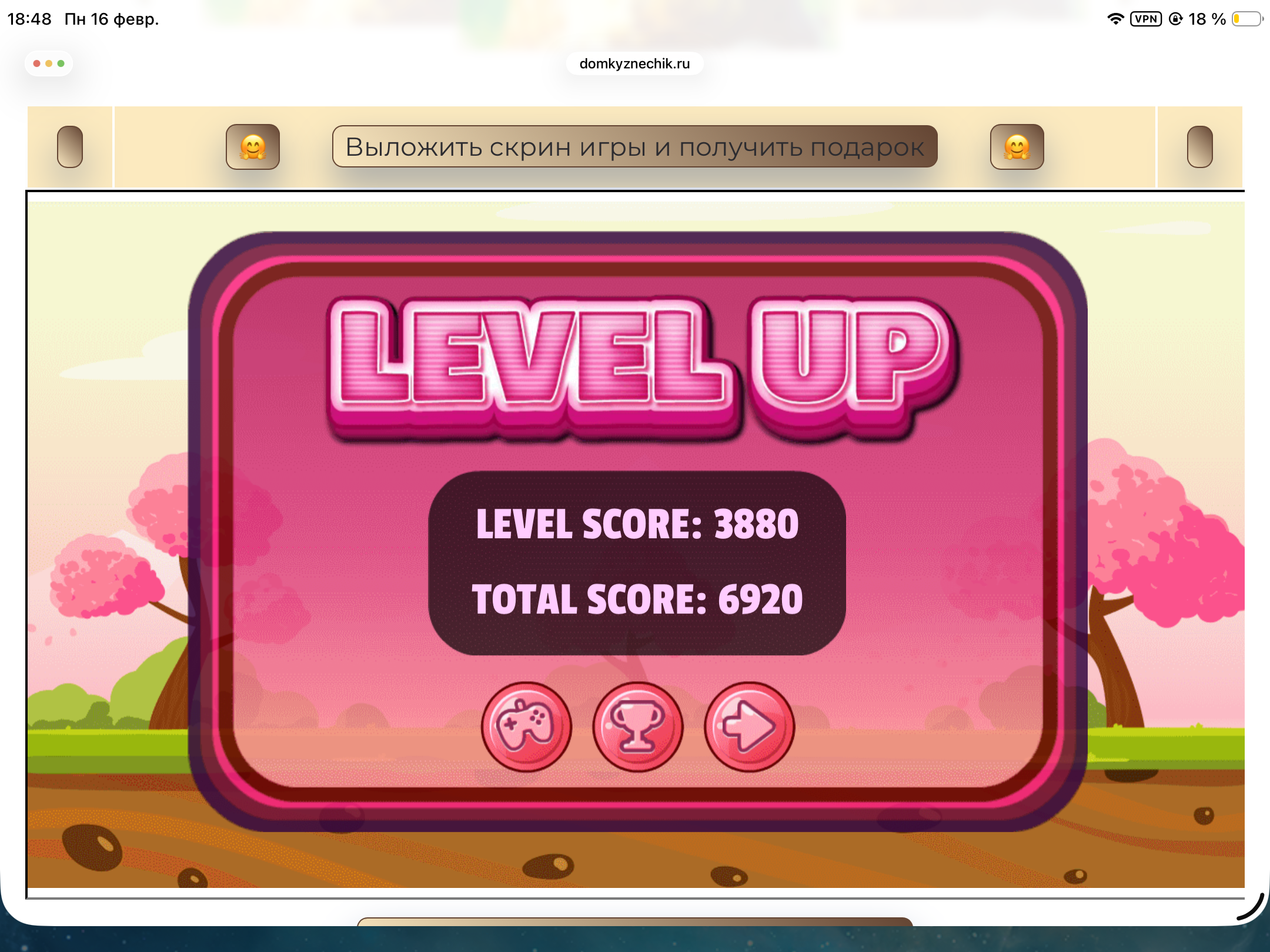 <tr><td height="35" style="background:url('') #4a150e;padding-top:7px;color:#FAE8C0;" align="center"><b>Сыграй в игру,выложи скрин и получи приз.В сутки 5 🎁 <br />