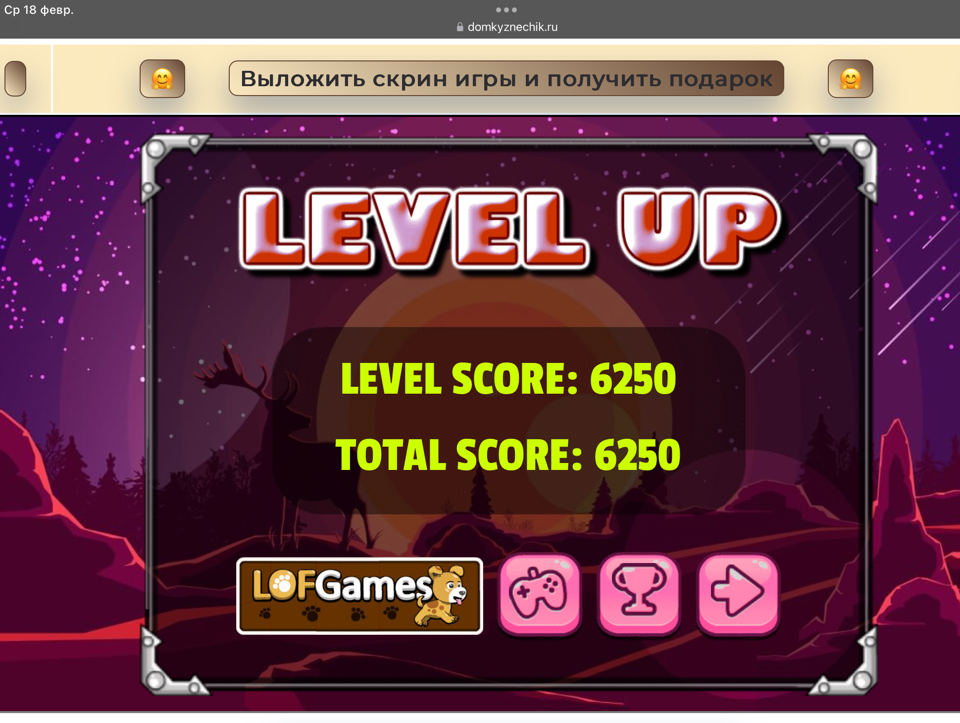 <tr><td height="35" style="background:url('') #4a150e;padding-top:7px;color:#FAE8C0;" align="center"><b>Сыграй в игру,выложи скрин и получи приз.В сутки 5 🎁 <br />