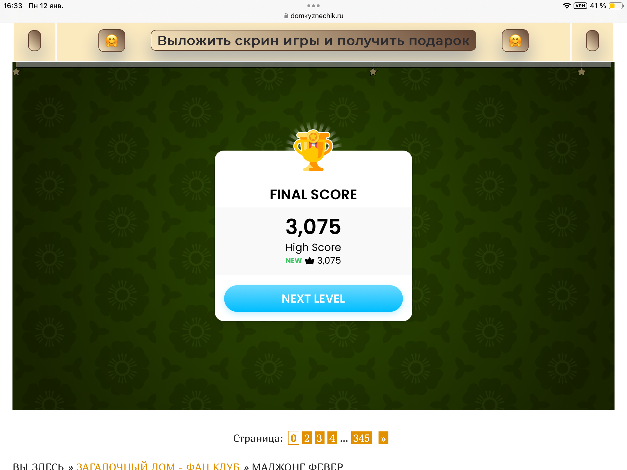 <tr><td height="35" style="background:url('') #4a150e;padding-top:7px;color:#FAE8C0;" align="center"><b>Сыграй в игру,выложи скрин и получи приз.В сутки 5 🎁 <br />