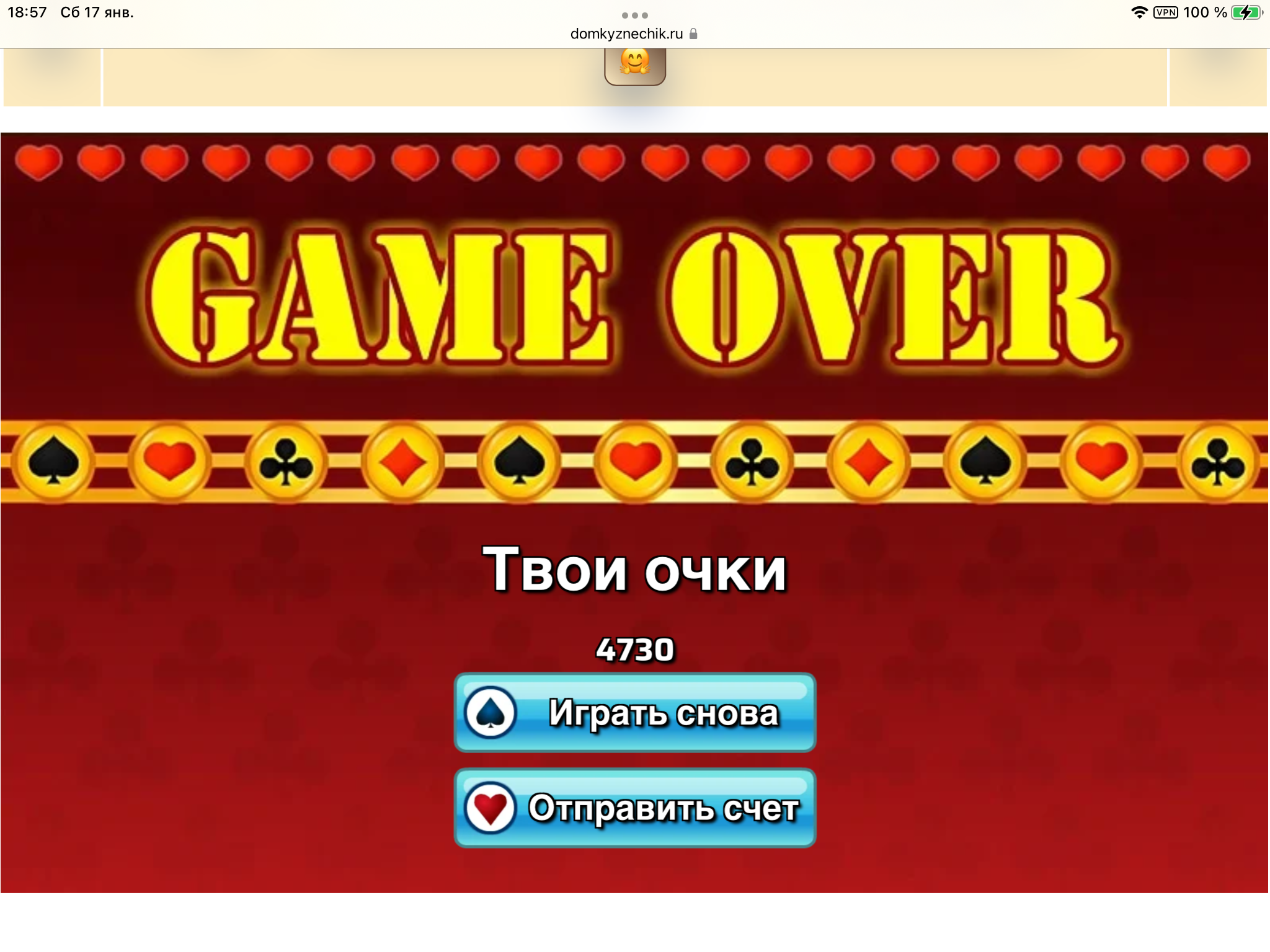 <tr><td height="35" style="background:url('') #4a150e;padding-top:7px;color:#FAE8C0;" align="center"><b>Сыграй в игру,выложи скрин и получи приз.В сутки 5 🎁 <br />