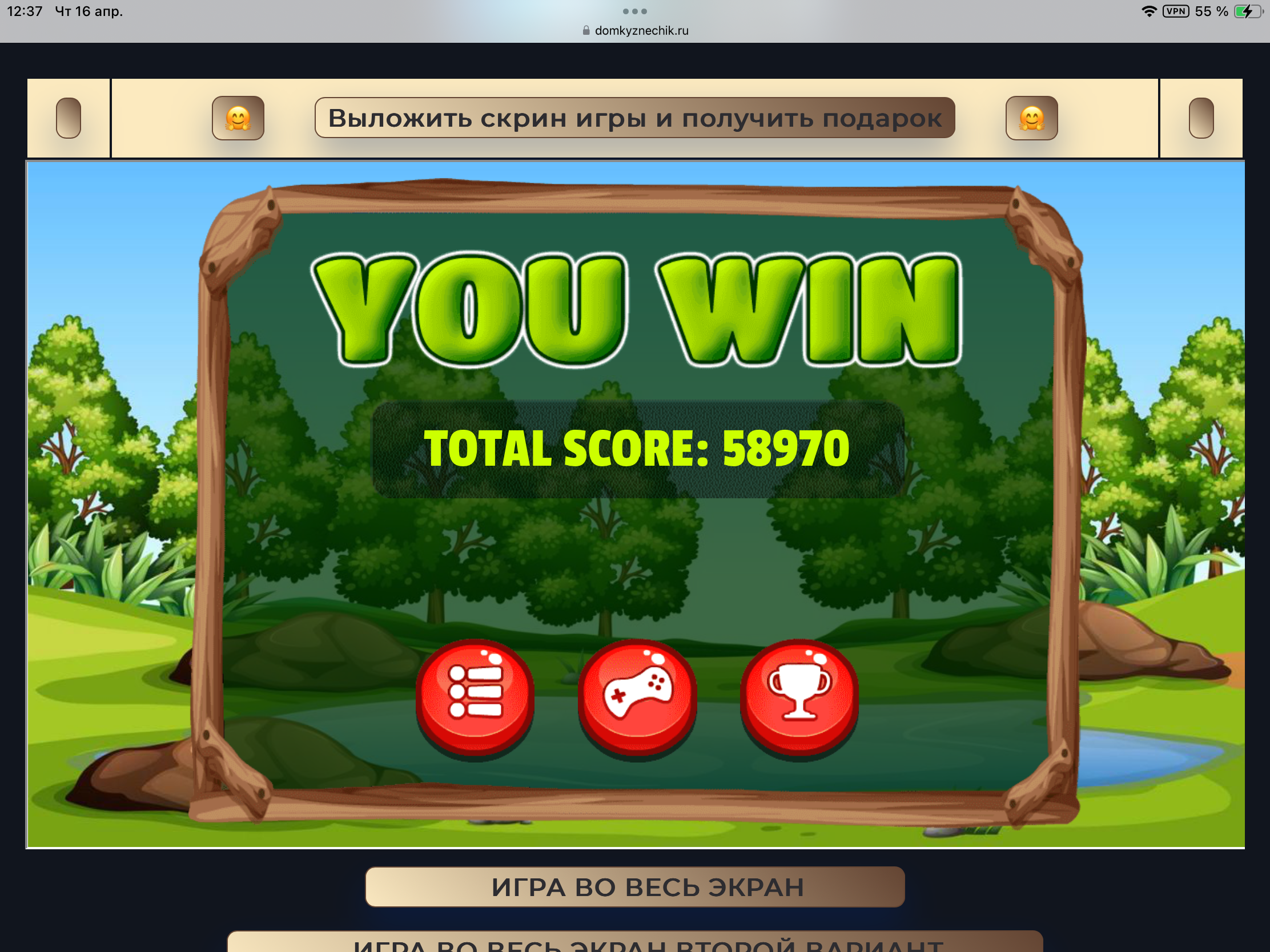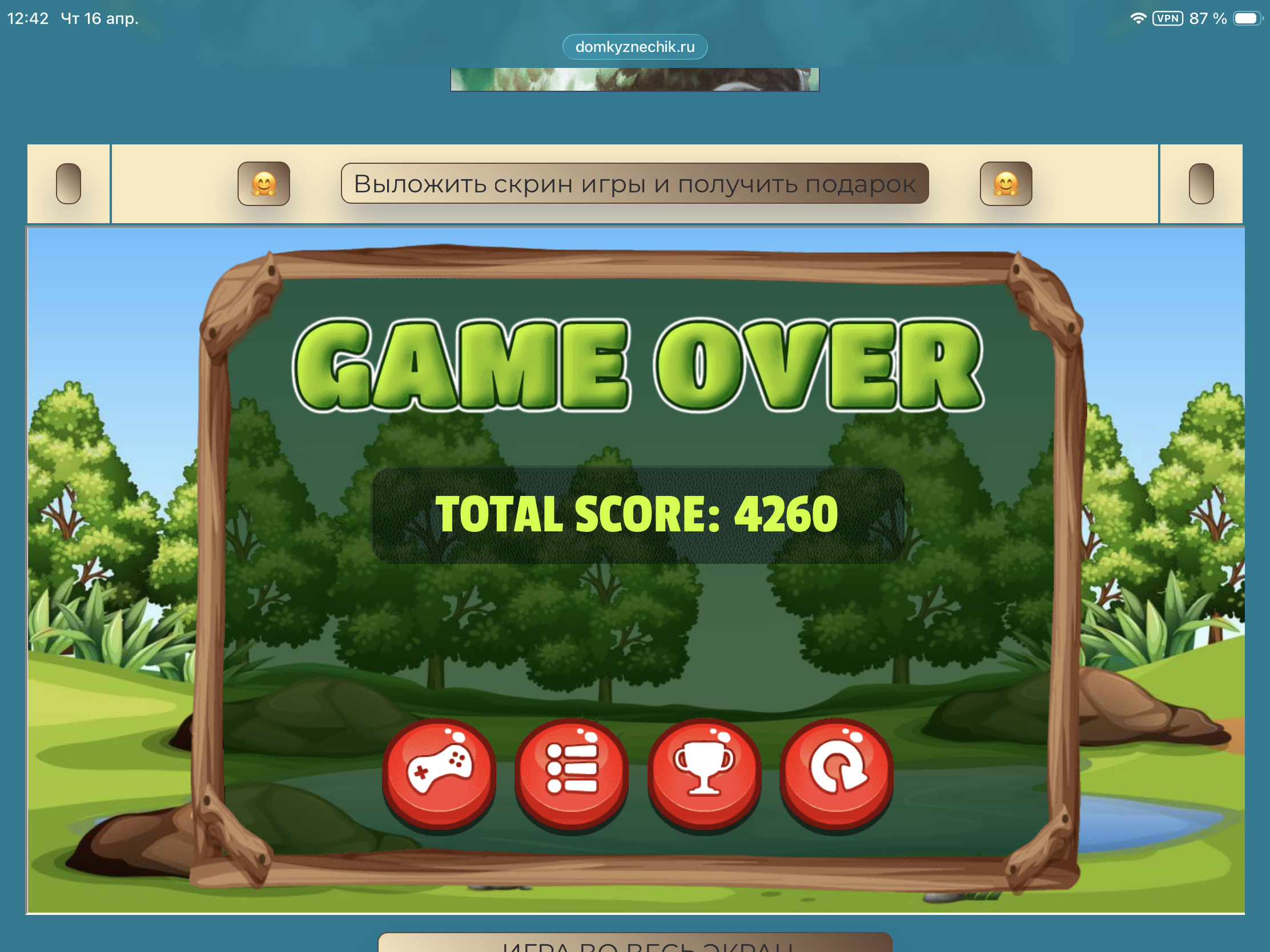<tr><td height="35" style="background:url('') #4a150e;padding-top:7px;color:#FAE8C0;" align="center"><b>Сыграй в игру,выложи скрин и получи приз.В сутки 5 🎁 <br />