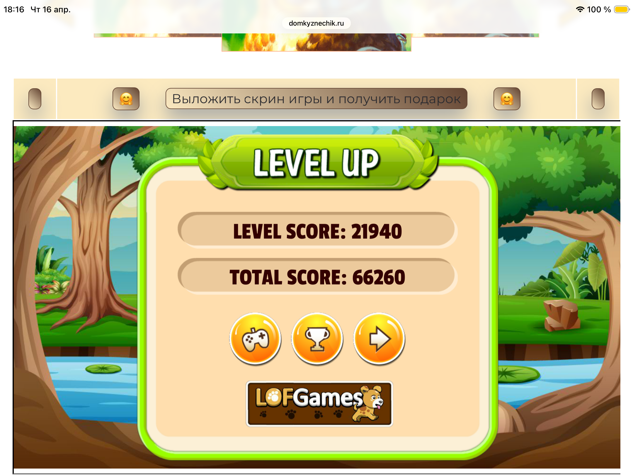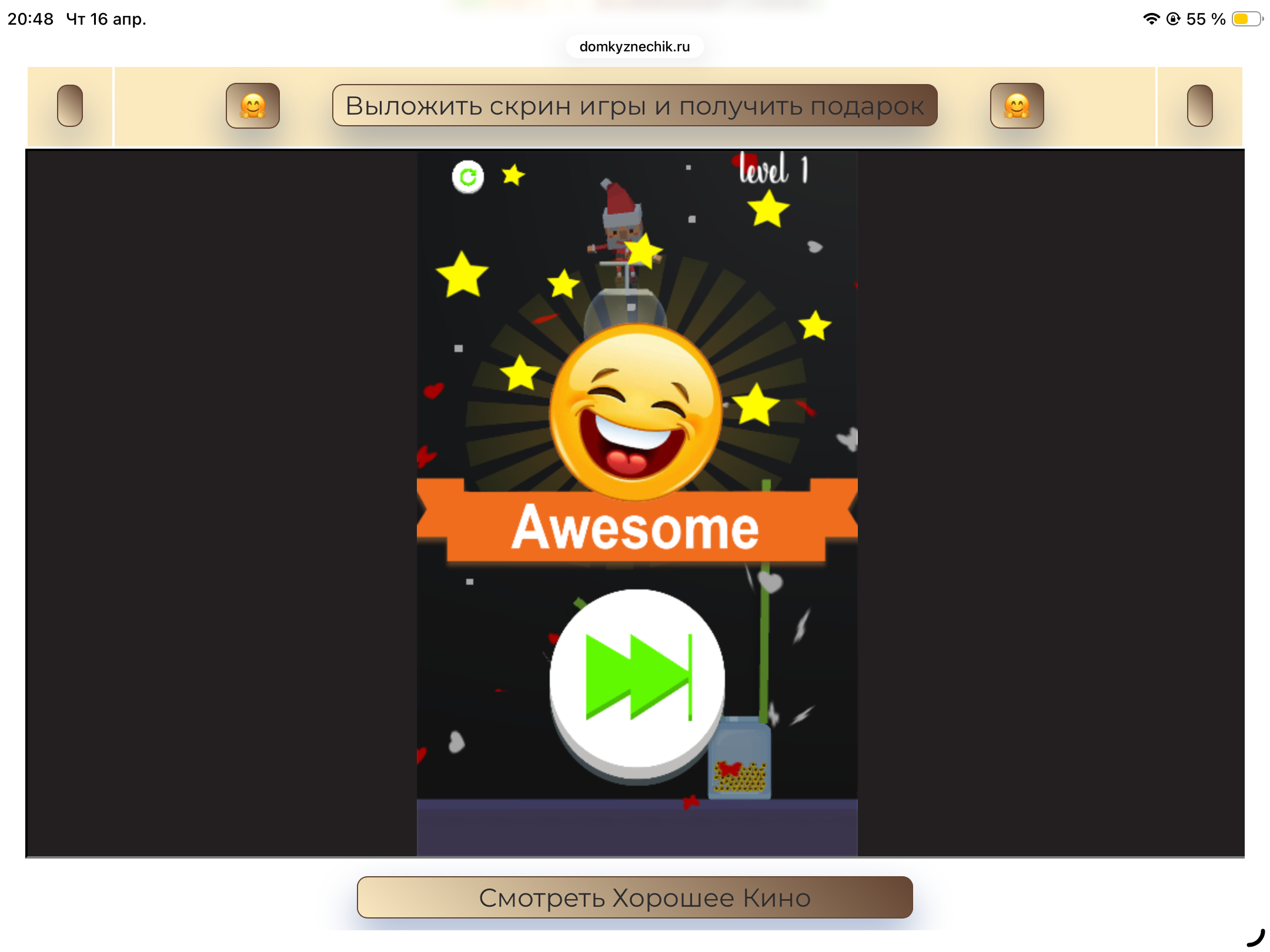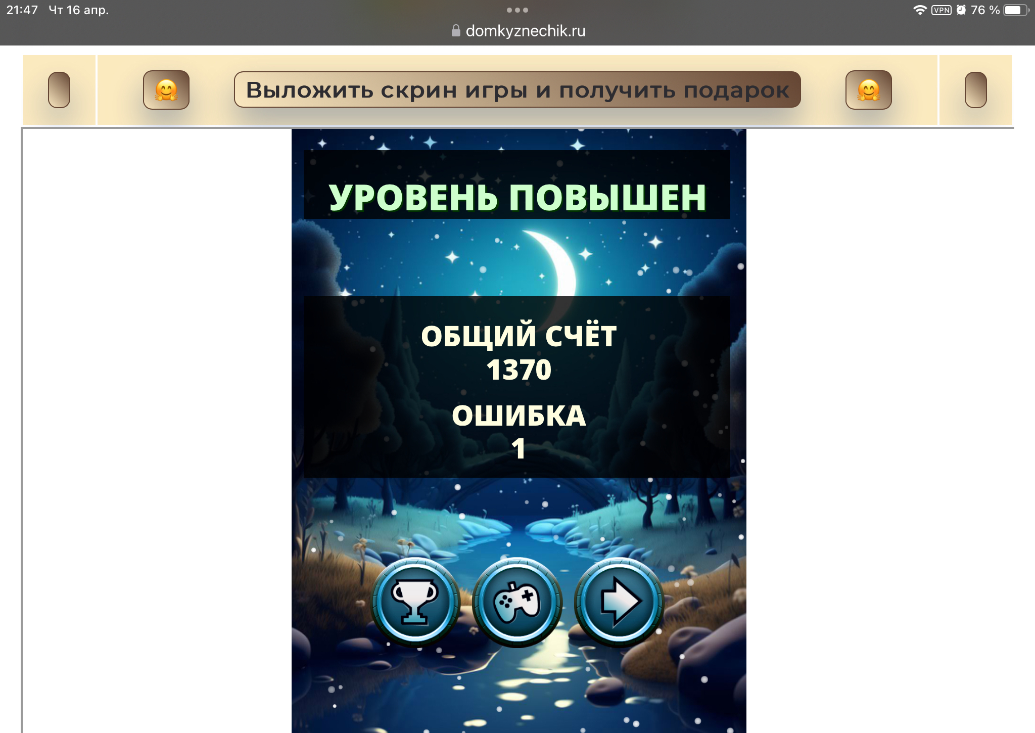 <tr><td height="35" style="background:url('') #4a150e;padding-top:7px;color:#FAE8C0;" align="center"><b>Сыграй в игру,выложи скрин и получи приз.В сутки 5 🎁 <br />