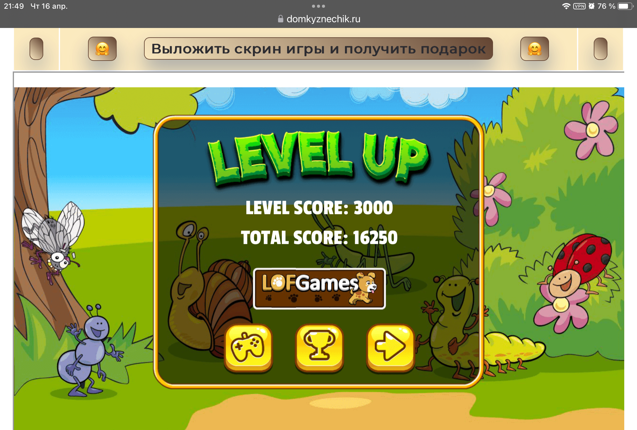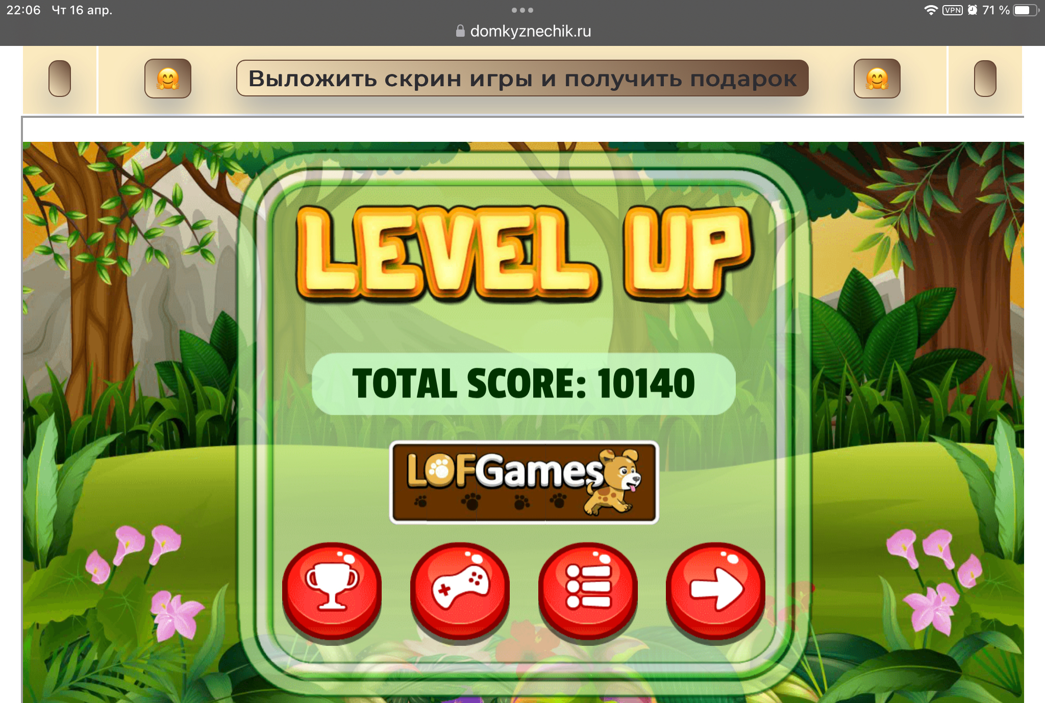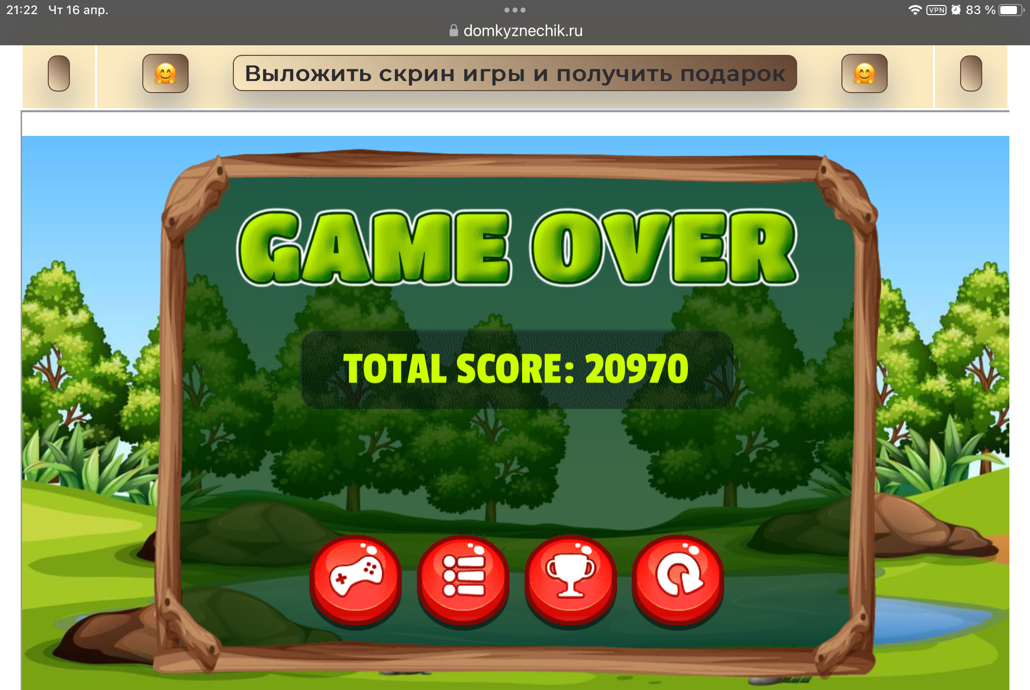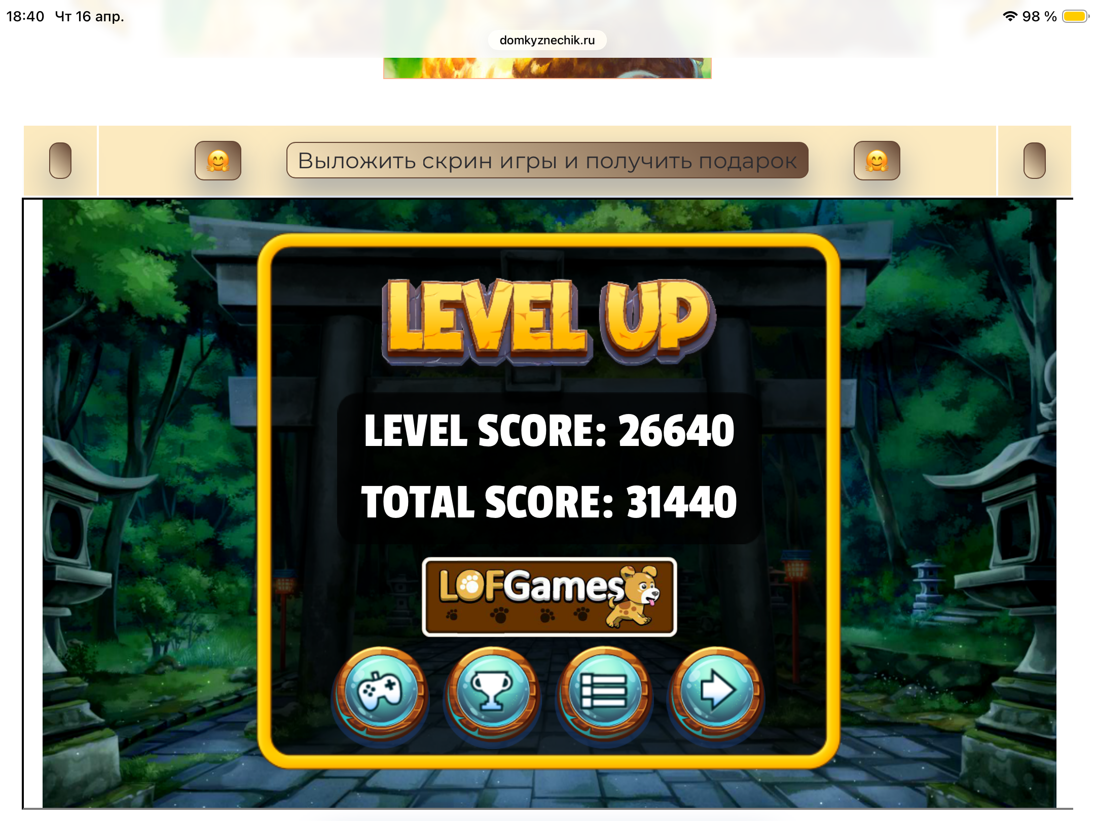 <tr><td height="35" style="background:url('') #4a150e;padding-top:7px;color:#FAE8C0;" align="center"><b>Сыграй в игру,выложи скрин и получи приз.В сутки 5 🎁 <br />