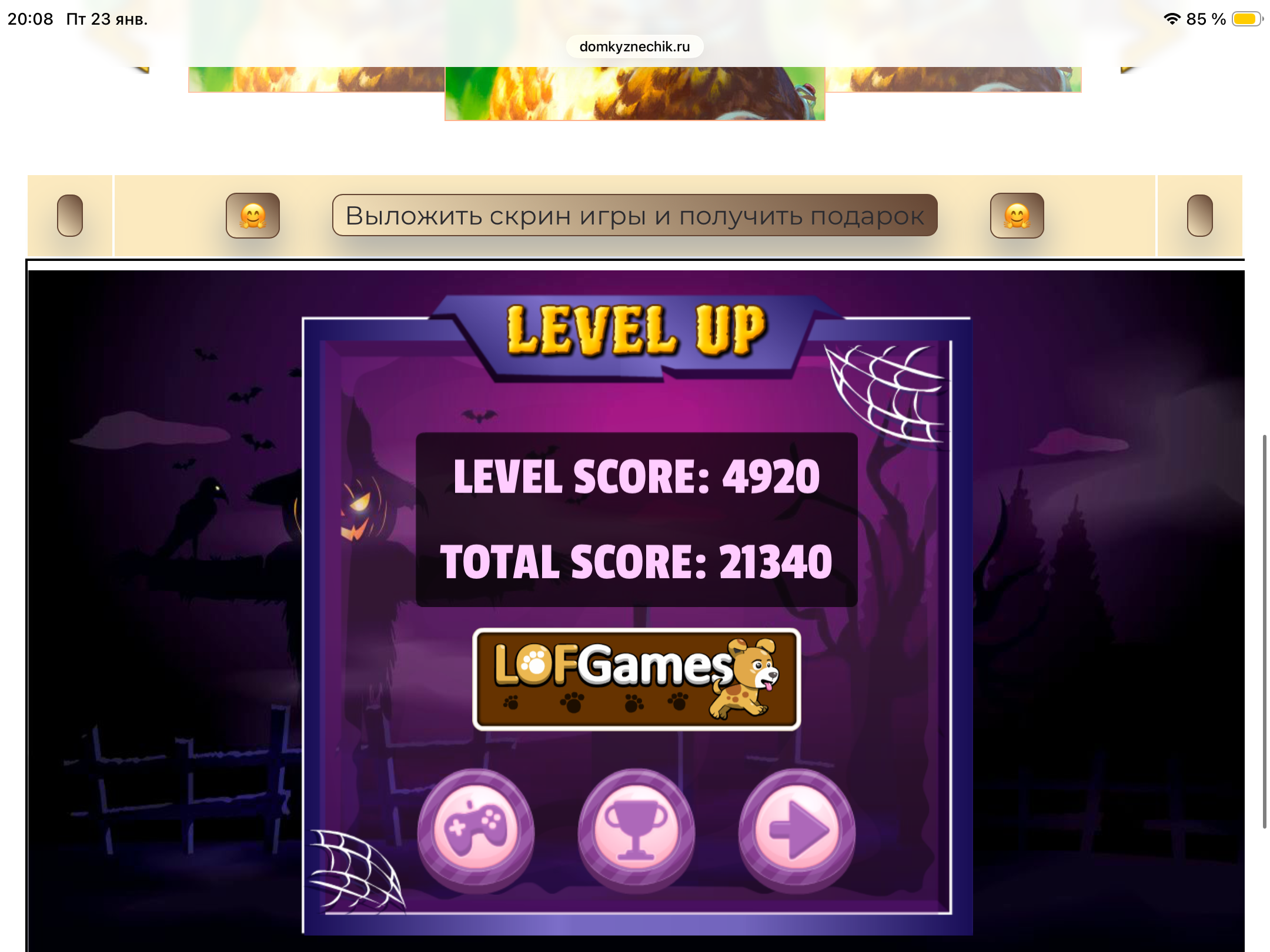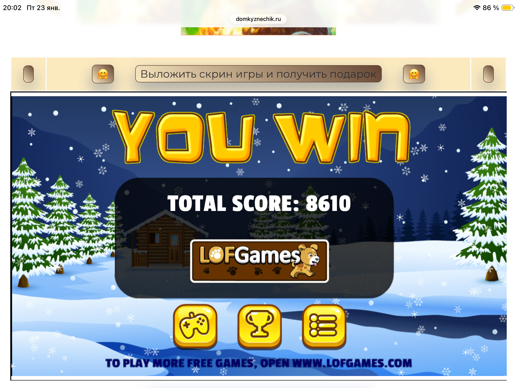 <tr><td height="35" style="background:url('') #4a150e;padding-top:7px;color:#FAE8C0;" align="center"><b>Сыграй в игру,выложи скрин и получи приз.В сутки 5 🎁 <br />