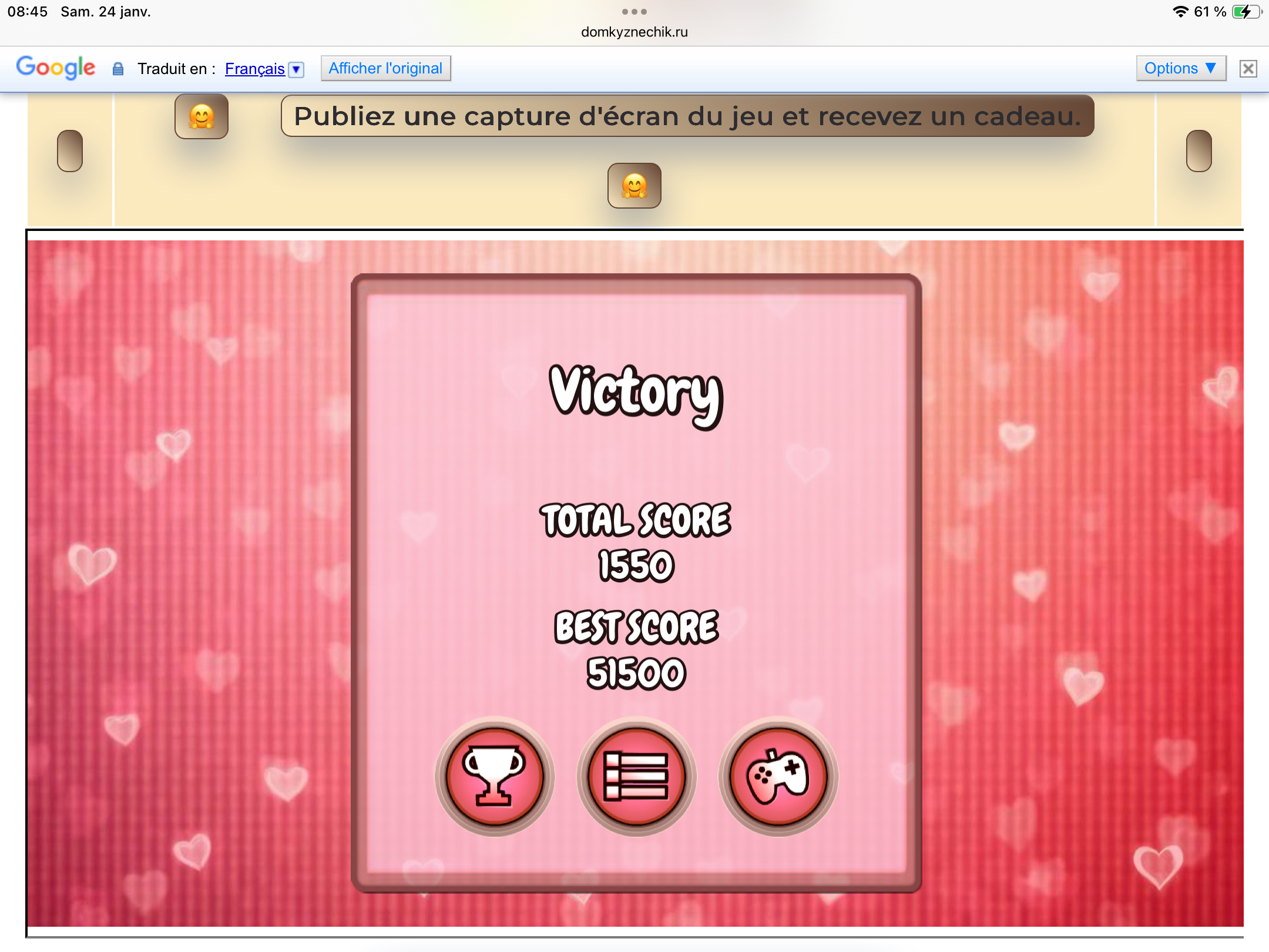 <tr><td height="35" style="background:url('') #4a150e;padding-top:7px;color:#FAE8C0;" align="center"><b>Сыграй в игру,выложи скрин и получи приз.В сутки 5 🎁 <br />