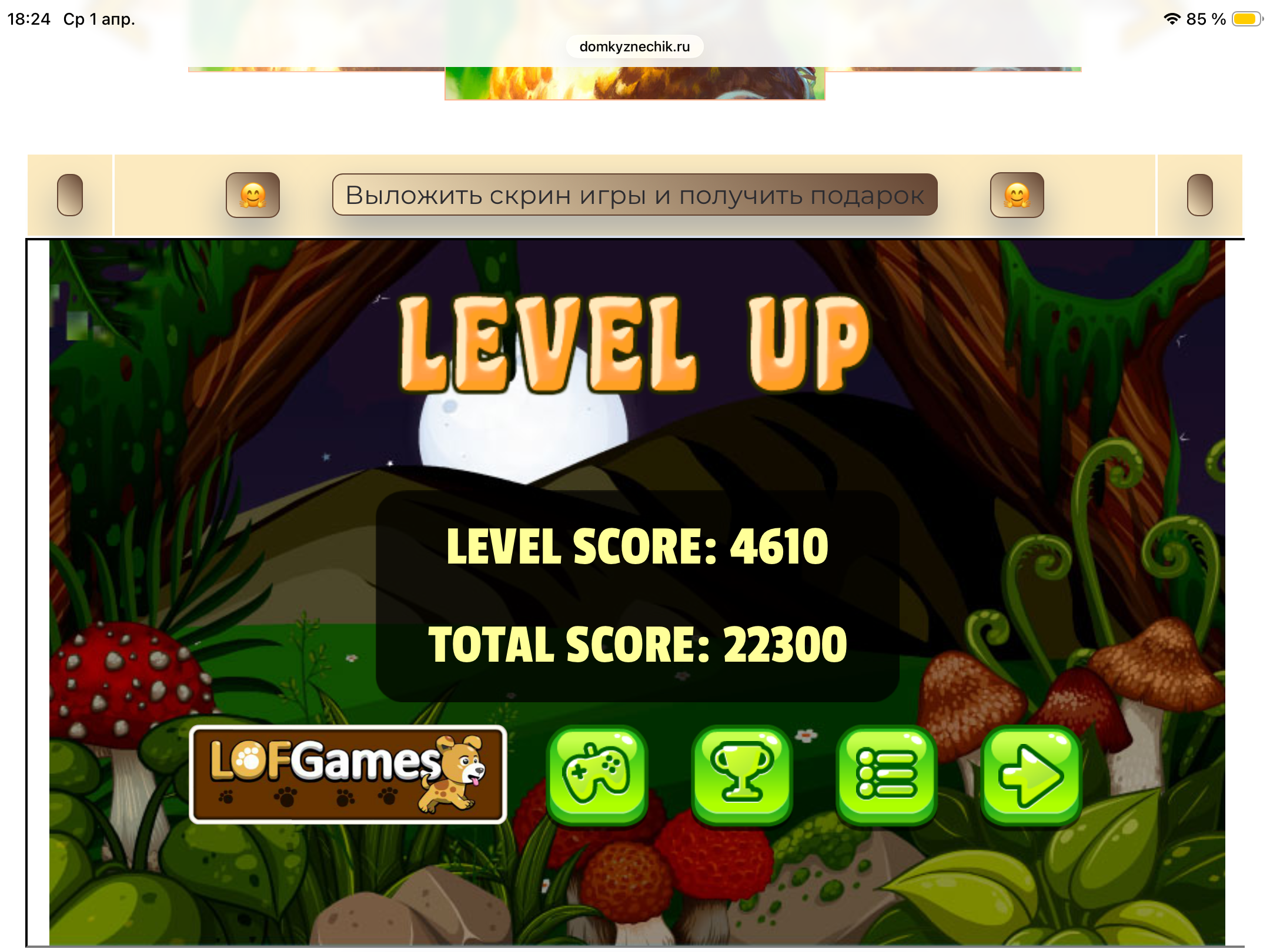 <tr><td height="35" style="background:url('') #4a150e;padding-top:7px;color:#FAE8C0;" align="center"><b>Сыграй в игру,выложи скрин и получи приз.В сутки 5 🎁 <br />