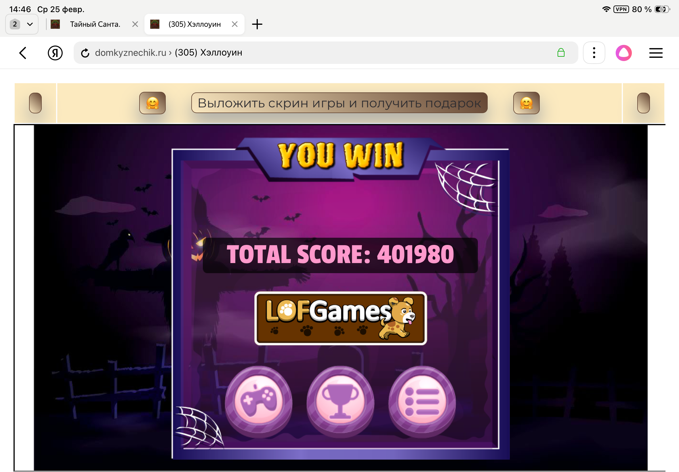 <tr><td height="35" style="background:url('') #4a150e;padding-top:7px;color:#FAE8C0;" align="center"><b>Сыграй в игру,выложи скрин и получи приз.В сутки 5 🎁 <br />
