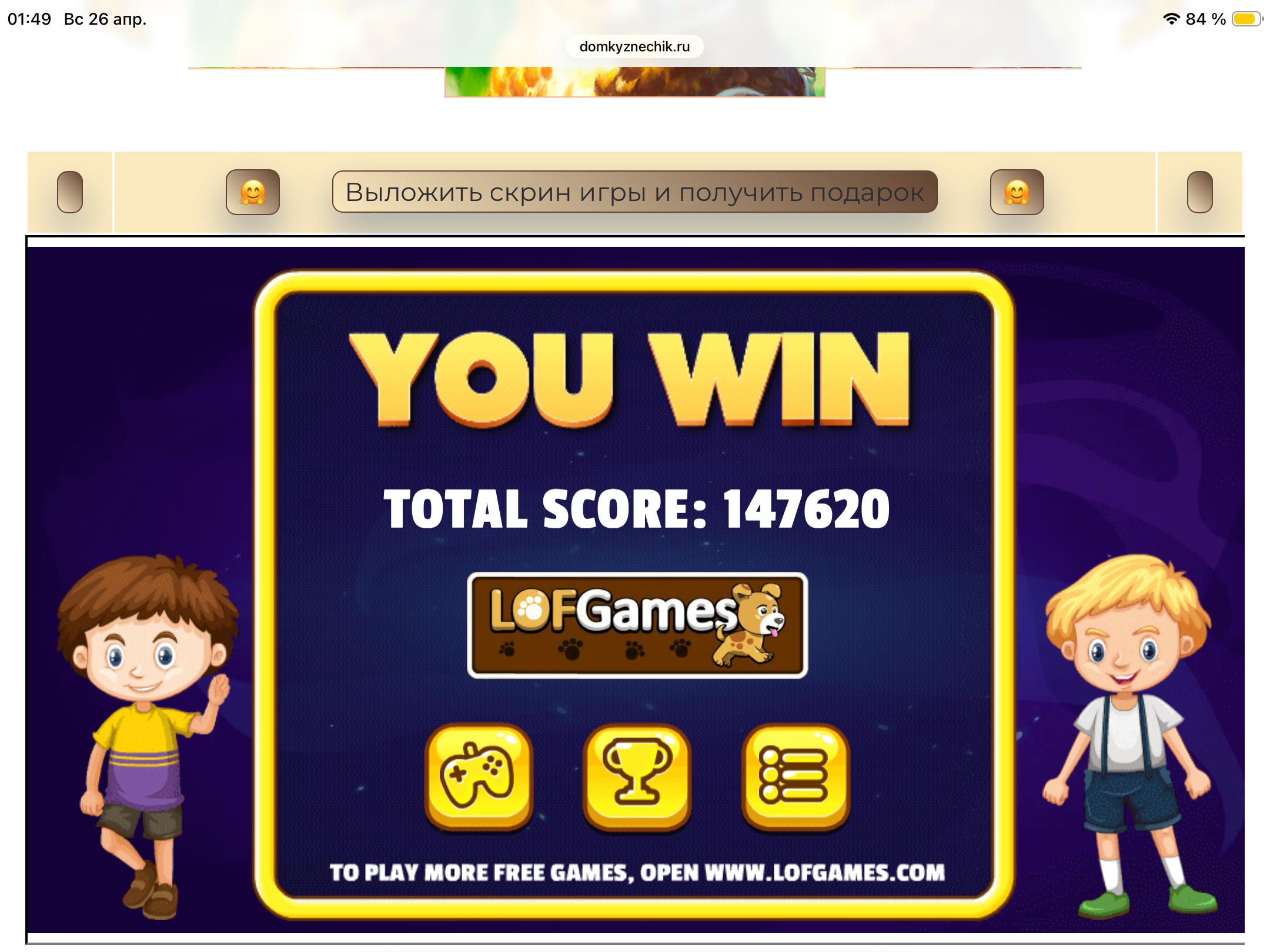 <tr><td height="35" style="background:url('') #4a150e;padding-top:7px;color:#FAE8C0;" align="center"><b>Сыграй в игру,выложи скрин и получи приз.В сутки 5 🎁 <br />