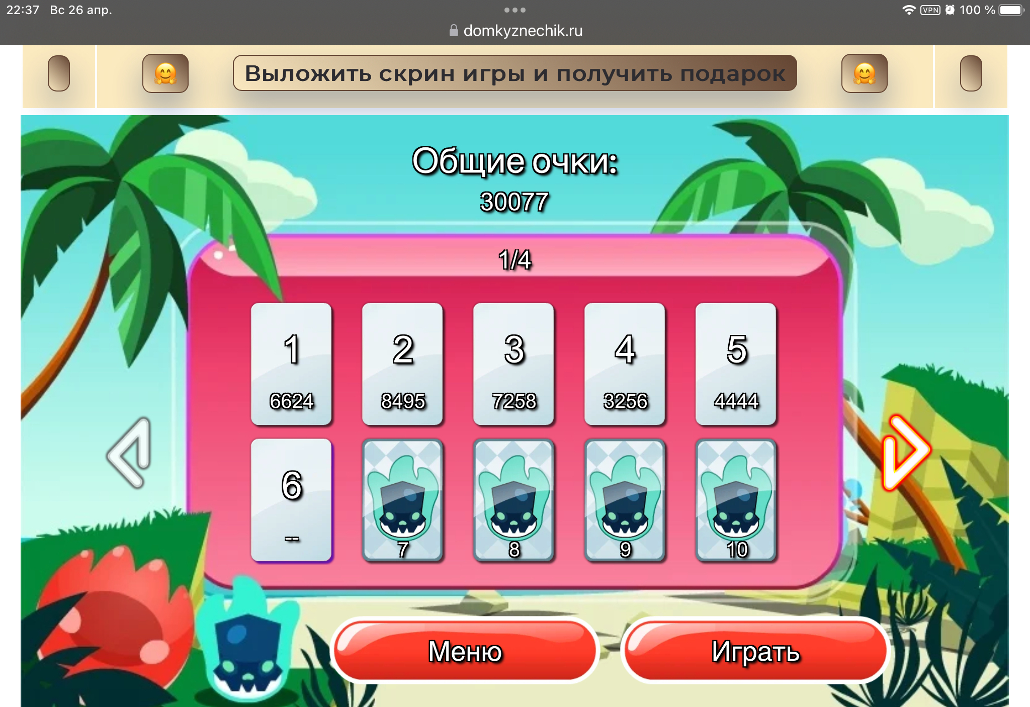 <tr><td height="35" style="background:url('') #4a150e;padding-top:7px;color:#FAE8C0;" align="center"><b>Сыграй в игру,выложи скрин и получи приз.В сутки 5 🎁 <br />