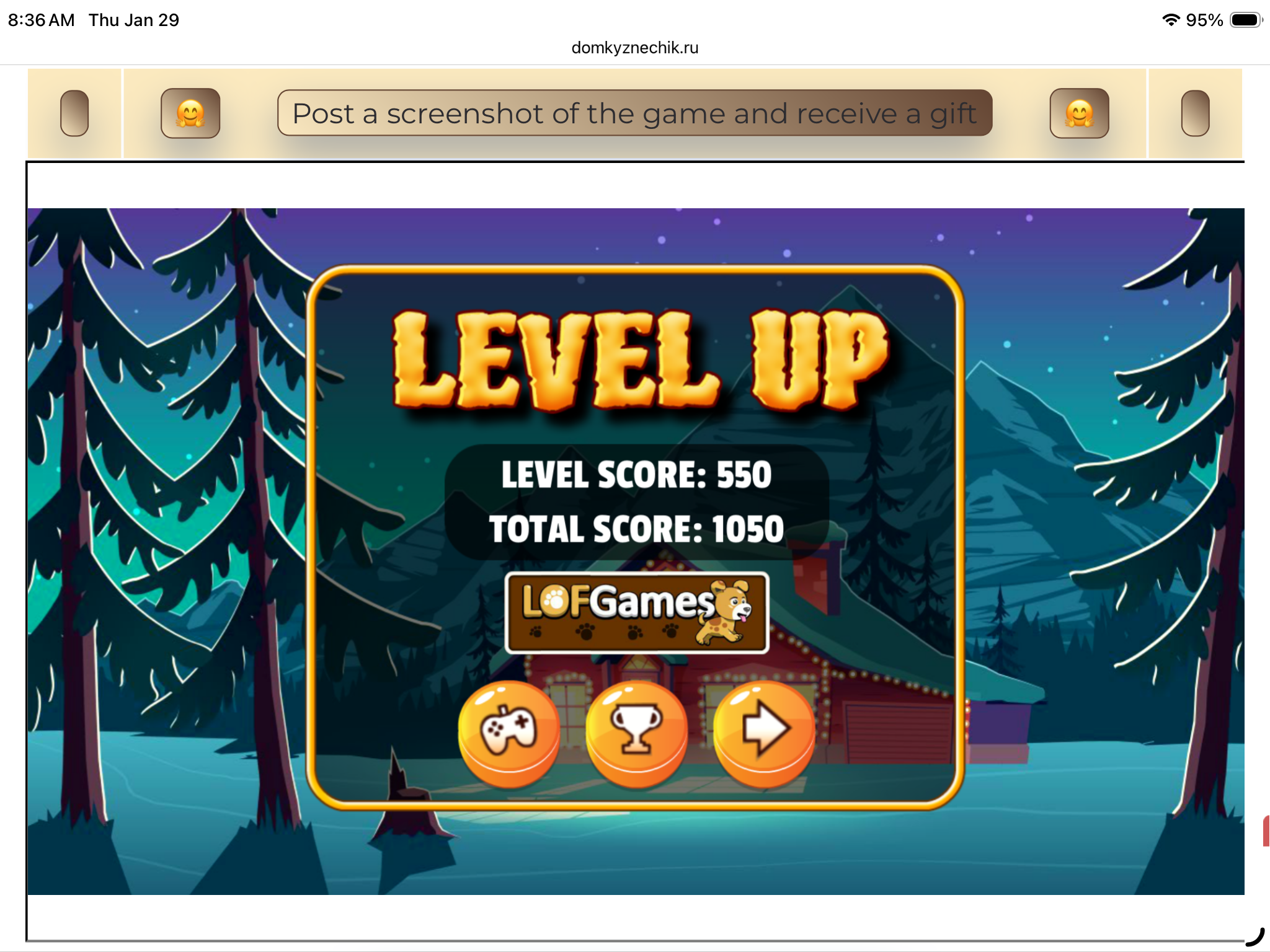 <tr><td height="35" style="background:url('') #4a150e;padding-top:7px;color:#FAE8C0;" align="center"><b>Сыграй в игру,выложи скрин и получи приз.В сутки 5 🎁 <br />