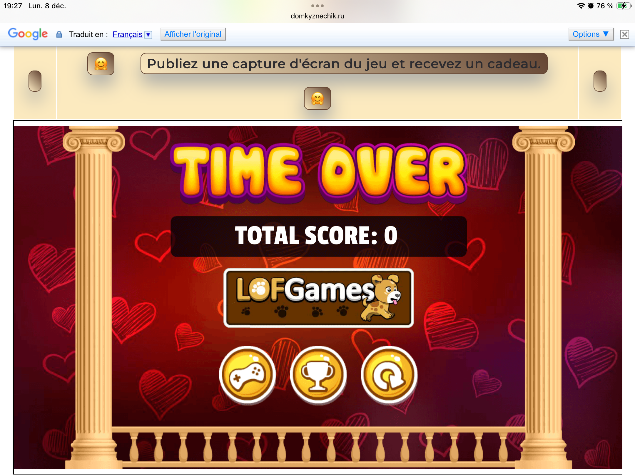 <tr><td height="35" style="background:url('') #4a150e;padding-top:7px;color:#FAE8C0;" align="center"><b>Сыграй в игру,выложи скрин и получи приз.В сутки 5 🎁 <br />