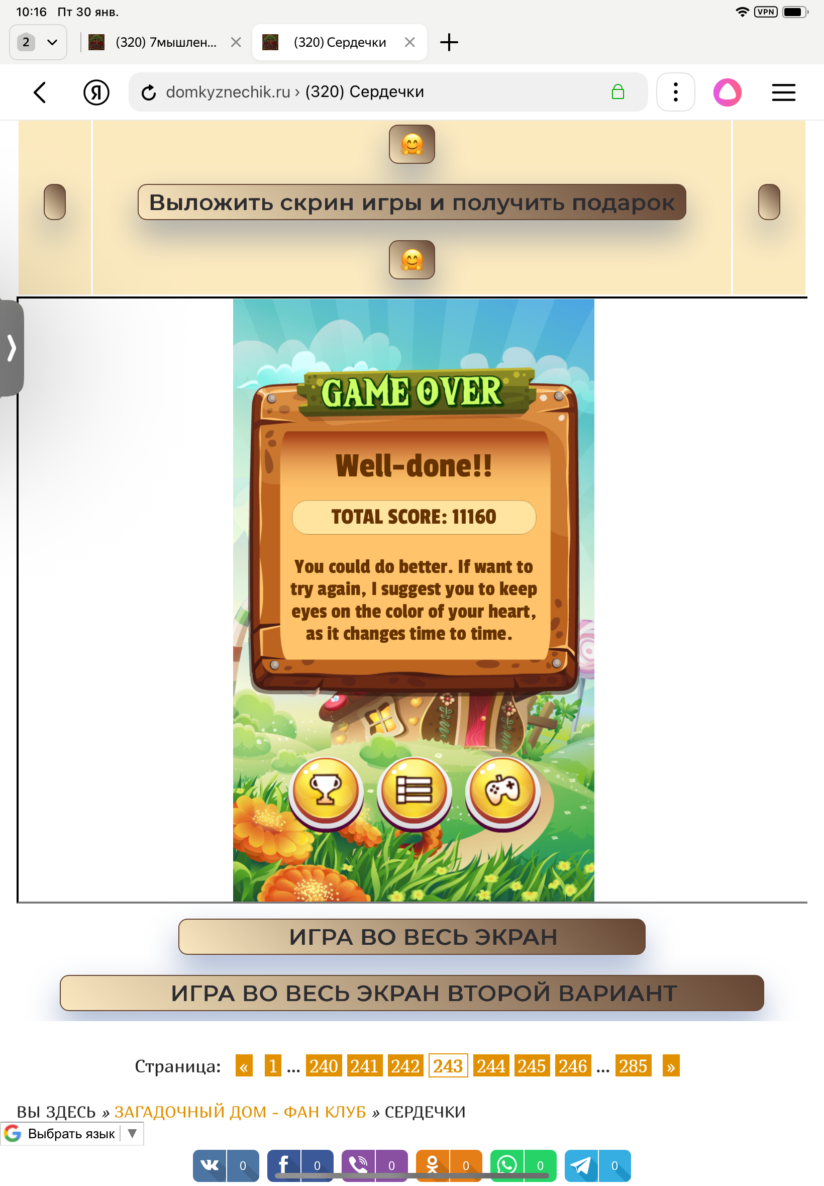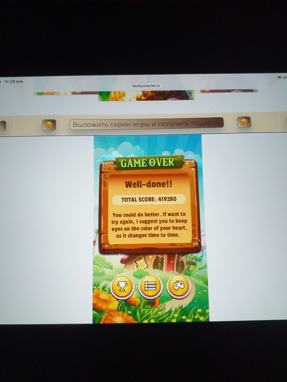 <tr><td height="35" style="background:url('') #4a150e;padding-top:7px;color:#FAE8C0;" align="center"><b>Сыграй в игру,выложи скрин и получи приз.В сутки 5 🎁 <br />