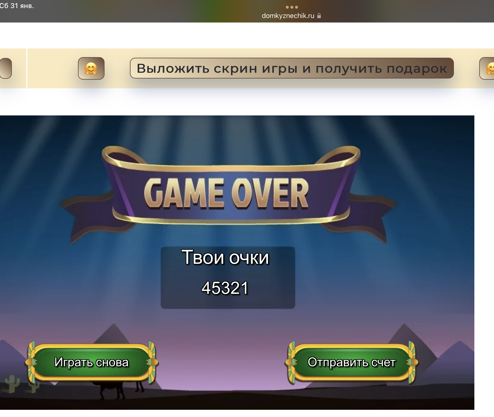 <tr><td height="35" style="background:url('') #4a150e;padding-top:7px;color:#FAE8C0;" align="center"><b>Сыграй в игру,выложи скрин и получи приз.В сутки 5 🎁 <br />