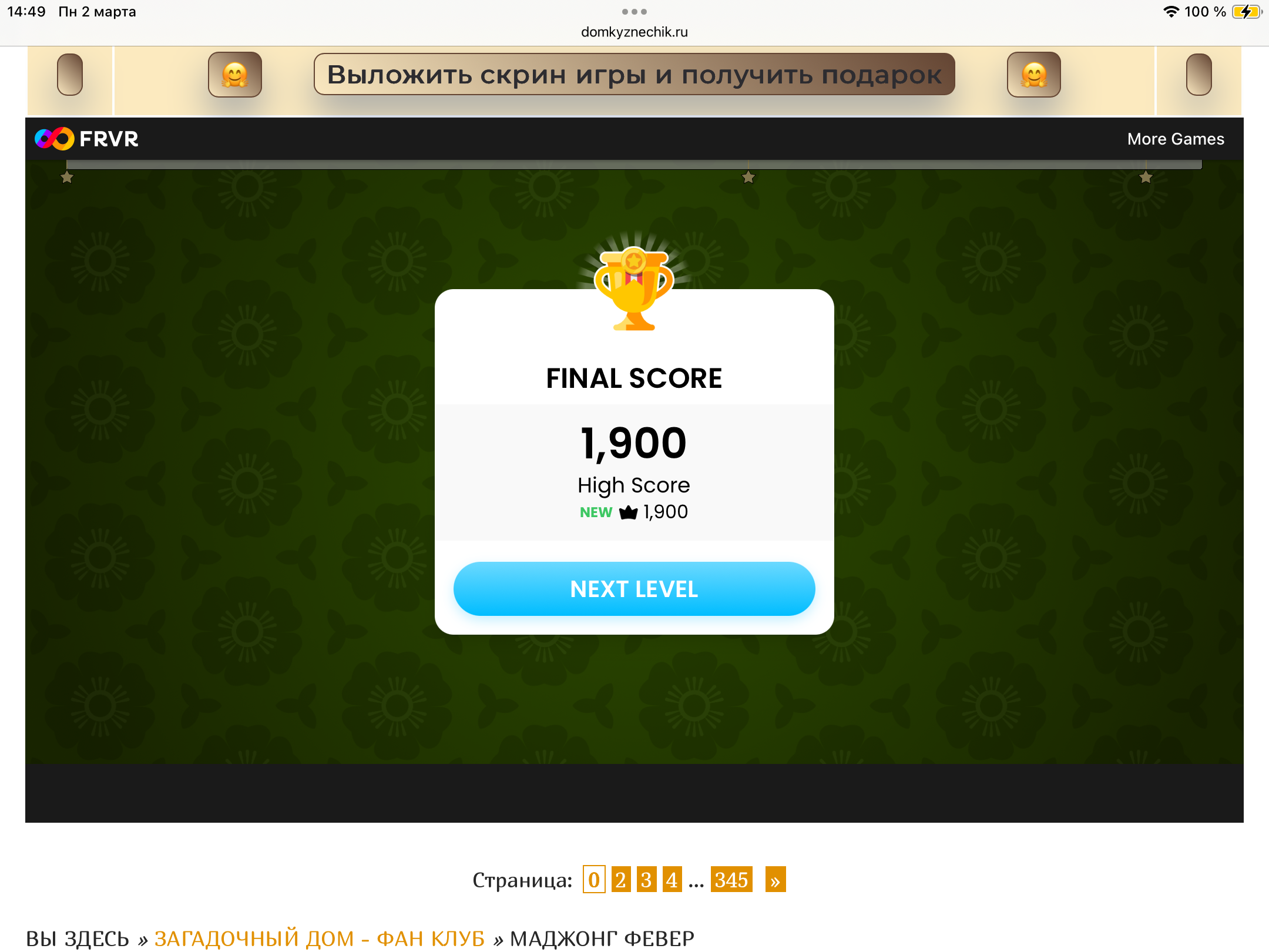 <tr><td height="35" style="background:url('') #4a150e;padding-top:7px;color:#FAE8C0;" align="center"><b>Сыграй в игру,выложи скрин и получи приз.В сутки 5 🎁 <br />
