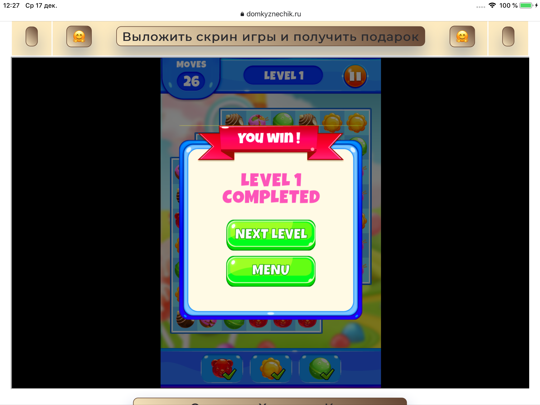 <tr><td height="35" style="background:url('') #4a150e;padding-top:7px;color:#FAE8C0;" align="center"><b>Сыграй в игру,выложи скрин и получи приз.В сутки 5 🎁 <br />