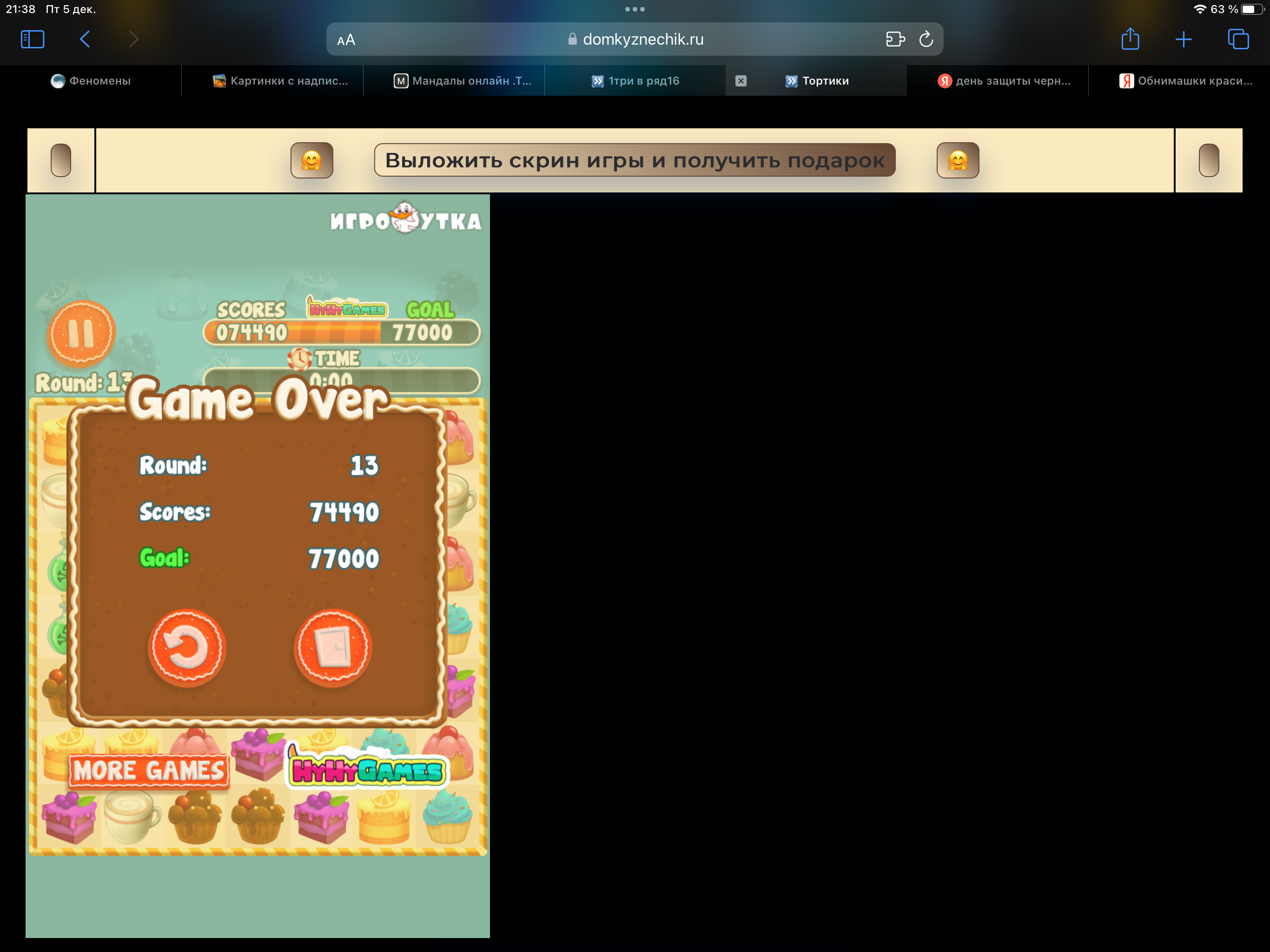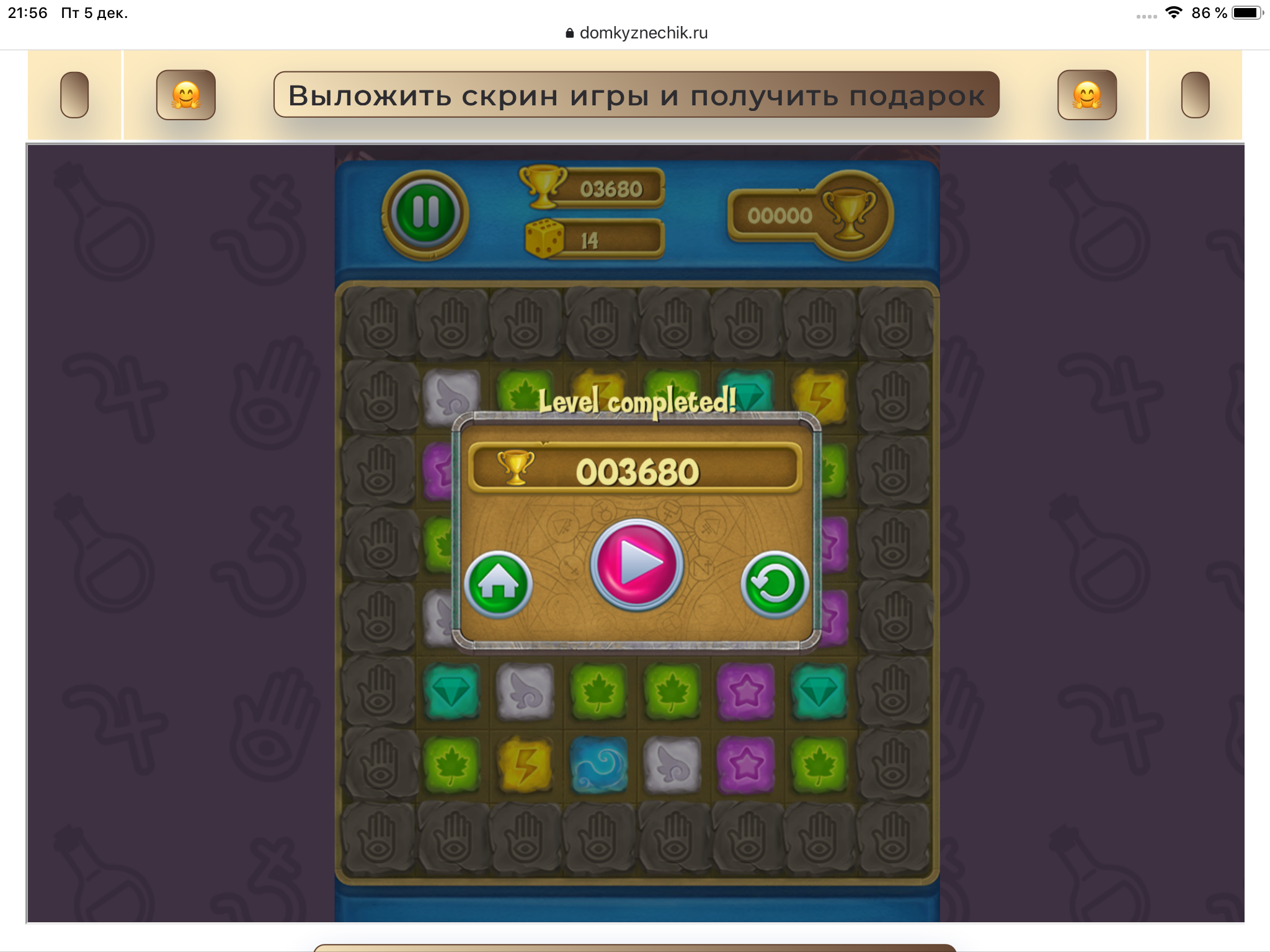 <tr><td height="35" style="background:url('') #4a150e;padding-top:7px;color:#FAE8C0;" align="center"><b>Сыграй в игру,выложи скрин и получи приз.В сутки 5 🎁 <br />