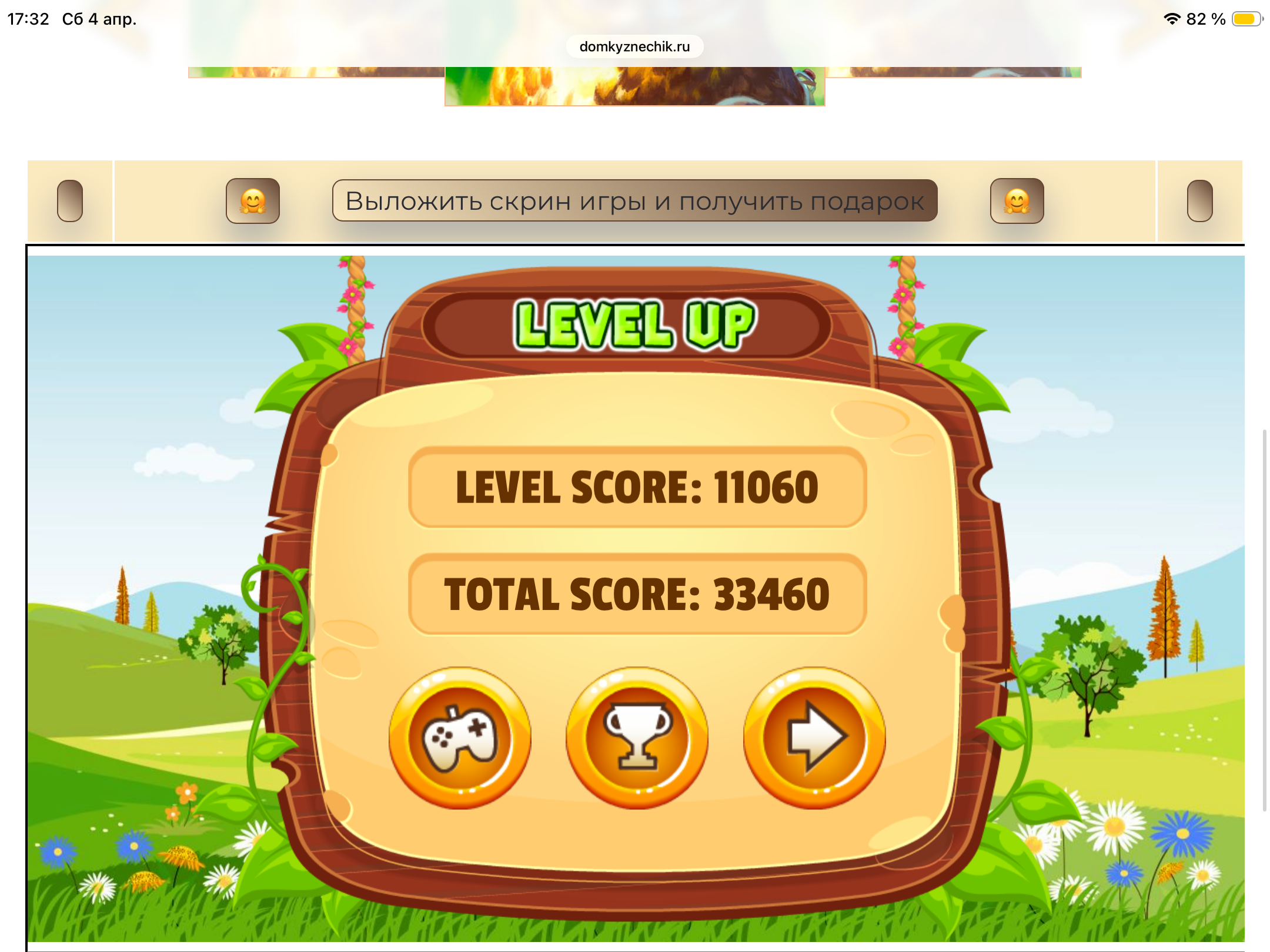 <tr><td height="35" style="background:url('') #4a150e;padding-top:7px;color:#FAE8C0;" align="center"><b>Сыграй в игру,выложи скрин и получи приз.В сутки 5 🎁 <br />