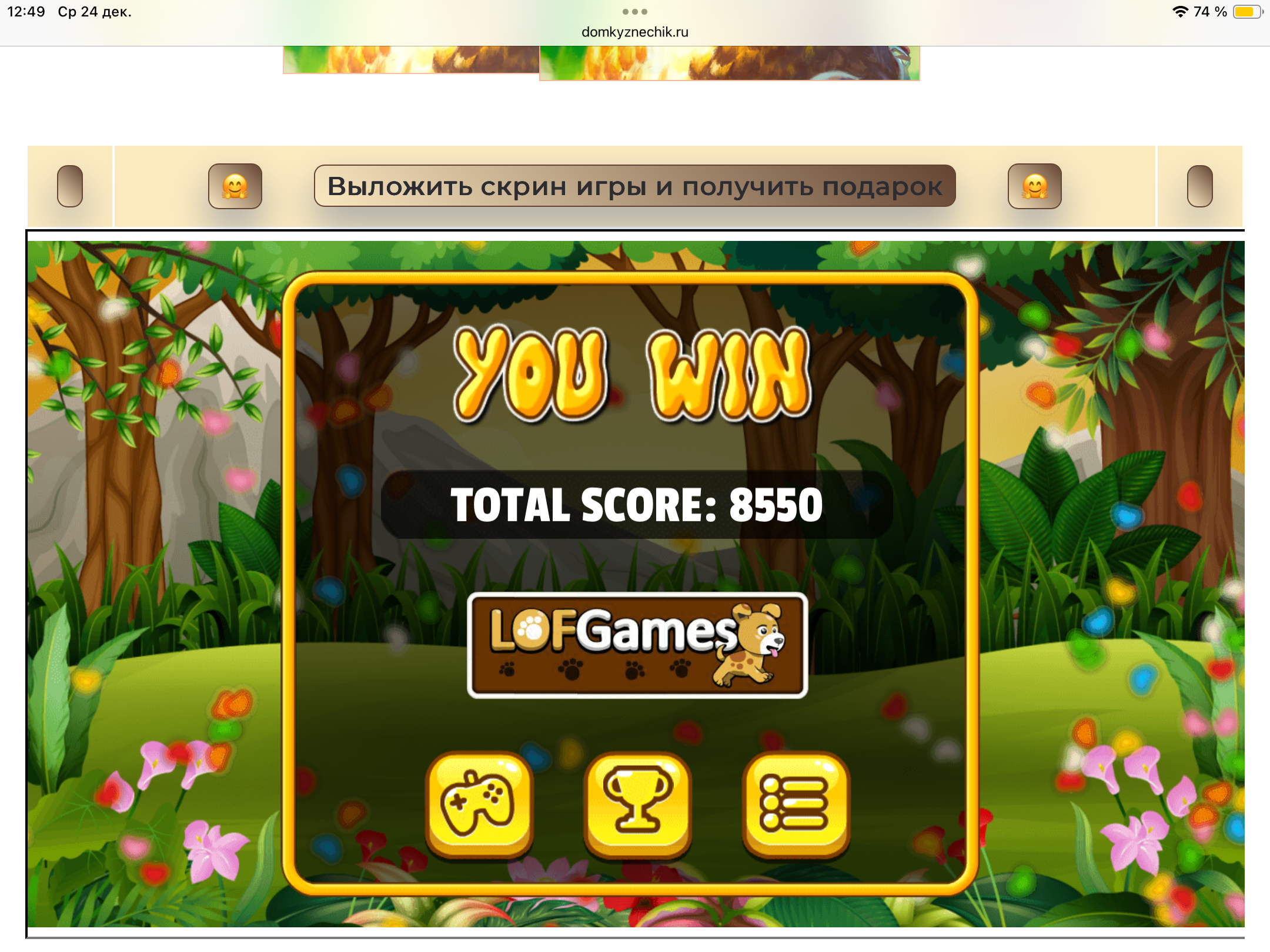 <tr><td height="35" style="background:url('') #4a150e;padding-top:7px;color:#FAE8C0;" align="center"><b>Сыграй в игру,выложи скрин и получи приз.В сутки 5 🎁 <br />